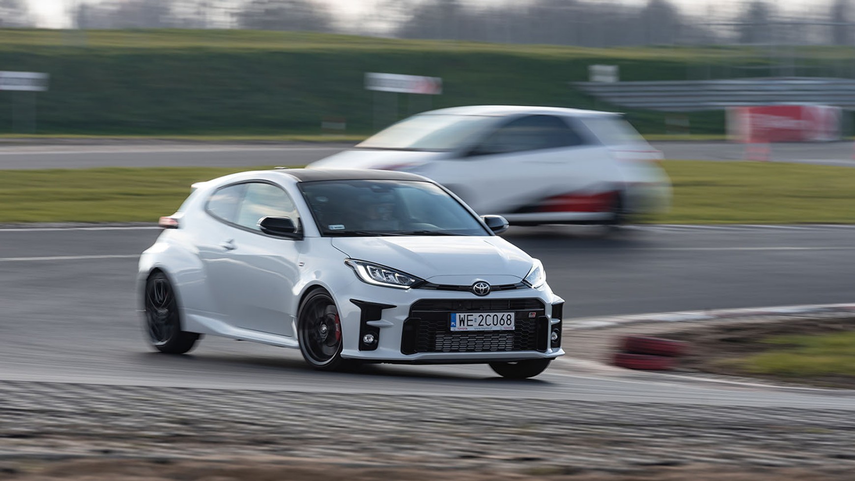A skoro już jesteśmy przy jeździe, to powiem wam tak. Zakochałem się – na torze GR Yaris jest takim dzikiem, że nie wiem z czym można porównać to, jak ten model zachowuje się nie tylko podczas przyśpieszania, ale przede wszystkim w zakrętach. Napęd na cztery koła naprawdę robi robotę i co równie ważne możemy sami decydować, czy chcemy mieć przewagę przodu czy z tyłu, a może równy podział mocy pomiędzy przednią a tylną osią. Tak, to wszystko w Yarisie. Lekkość, z jaką to auto pokonuje zakręty, precyzja prowadzenia czy zaskakujące slajdy – w tym modelu to wszystko mamy w pakiecie.