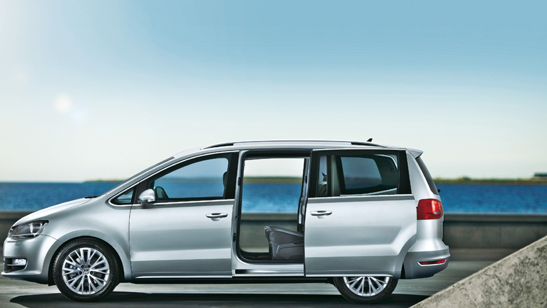 W zależności od konfiguracji siedzeń przestrzeń ładunkowa Sharana może mieć pojemność nawet 2297 l i bez trudu umieścimy tam przedmioty o długości dochodzącej do 2,1 m. Przy zajętych 5 miejscach pojemność bagażnika wynosi 711 l do linii okien i 1167 l po dach (specjalna siatka zabezpiecza wtedy pakunki przed wpadnięciem do części pasażerskiej).