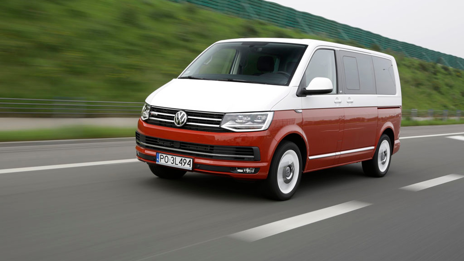 W komplecie z kluczykami do testowego VW Multivana powinno się dostawać urlop. A wraz z tym konkretnym egzemplarzem – najlepiej jeszcze bilety na mecz naszych szczypiornistów! Lakierowanie w narodowych barwach czyni go idealnym wozem wypadowym dla grupy kibiców, choć w założeniu stylistów biało-czerwone malowanie i chromowane felgi są ukłonem w stronę historii Multivana, czyli kultowego „ogórka” T1.