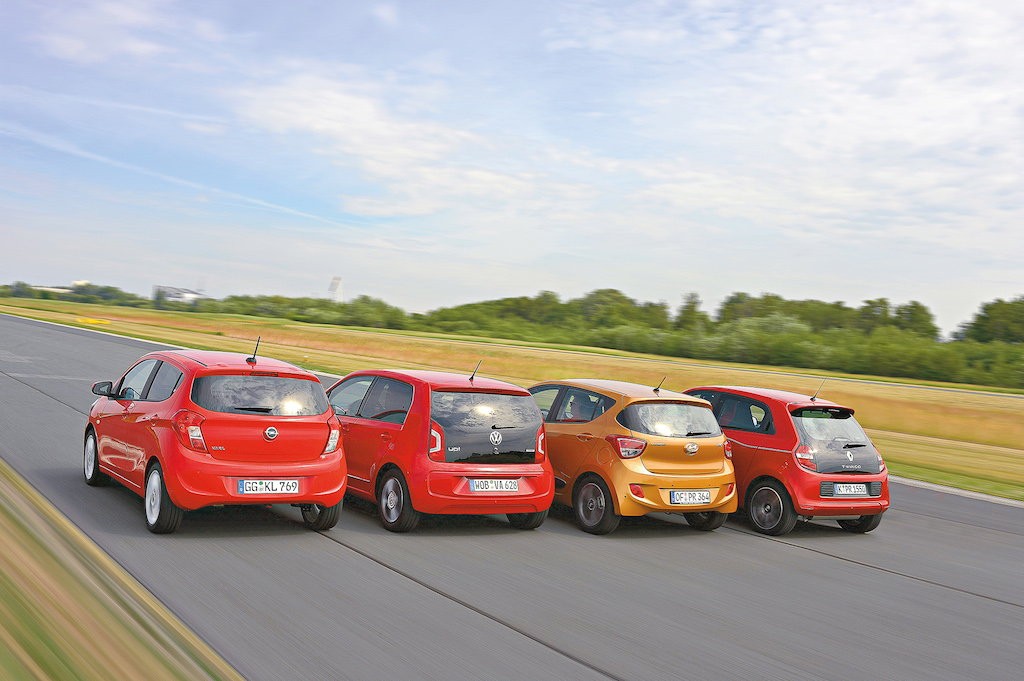 Do testu wybraliśmy wersje (jako bazowe) za mniej więcej 40 000 zł. Jednak w punktacji wzięliśmy już pod uwagę ceny samochodów po doposażeniu. Wówczas najtańsze w zakupie okazuje się Renault Twingo za 42 900 zł (przed doposażeniem: 42 300 zł), następny jest Hyundai i10 za 45 600 zł (początkowo: 41 600 zł), dalej mamy Opla Karla za 46 490 zł (wyjściowa cena to 39 990 zł) i wreszcie najdroższym modelem w porównaniu jest Volkswagen up!, który po doliczeniu opcji kosztuje 48 390 zł (cena podstawowa: 40 800 zł).