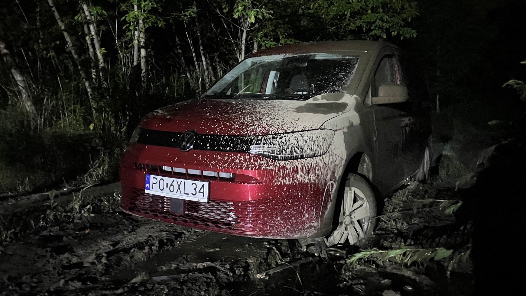 Szczęśliwie tuż przy głównej drodze znajdowała się myjnia bezdotykowa, na którą dostarczył mnie bardzo uprzejmy pomimo nieludzkiej pory laweciarz. Po chwili Volkswagen Caddy California znów był wiśniowy. Skutki kąpieli w błocie usuwałem jednak do 4.00 nad ranem, bo naniosłem na butach i ubraniach sporo brudu do kabiny, kiedy jeszcze próbowałem desperacko wydostać się na własną rękę ze śliskich kolein. To teraz szybka drzemka i... do pracy!