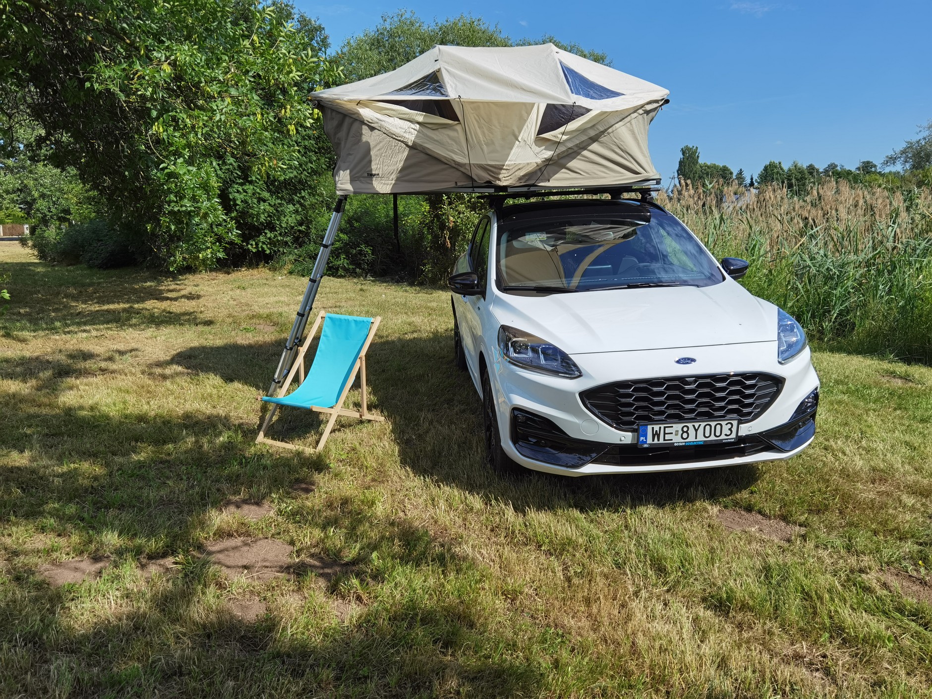 Zresztą nie ma powodów, aby nie wierzyć w deklaracje co do czasu montażu namiotu, bo w kwestii jego rozkładania udało mi się uzyskać czas tylko o minutę gorszy, niż zakłada Thule. — Gdy już dotrzesz do celu, rozłożenie namiotu zajmuje tylko chwilę – trwa to poniżej 3 minut od momentu zaparkowania auta. Z zegarkiem w ręku, zajęło mi to "aż" cztery minuty, i to bez zbytniego pośpiechu. Z całego tego czasu najdłużej, czyli pewnie jakieś trzy minuty, trwało rozpinanie zamka, opończy, którą cała konstrukcja jest zabezpieczona podczas jazdy, a i to tylko dlatego, że Kuga z namiotem nie należy do najniższych samochodów świata, więc zamek trzeba odpinać "po kawałku", za każdym razem stając na progu auta w otwartych drzwiach. Obchodzenie auta także trochę trwa. No, chyba że ktoś ma ok. 2 m wzrostu — wtedy poradzi sobie pewnie nieco szybciej.