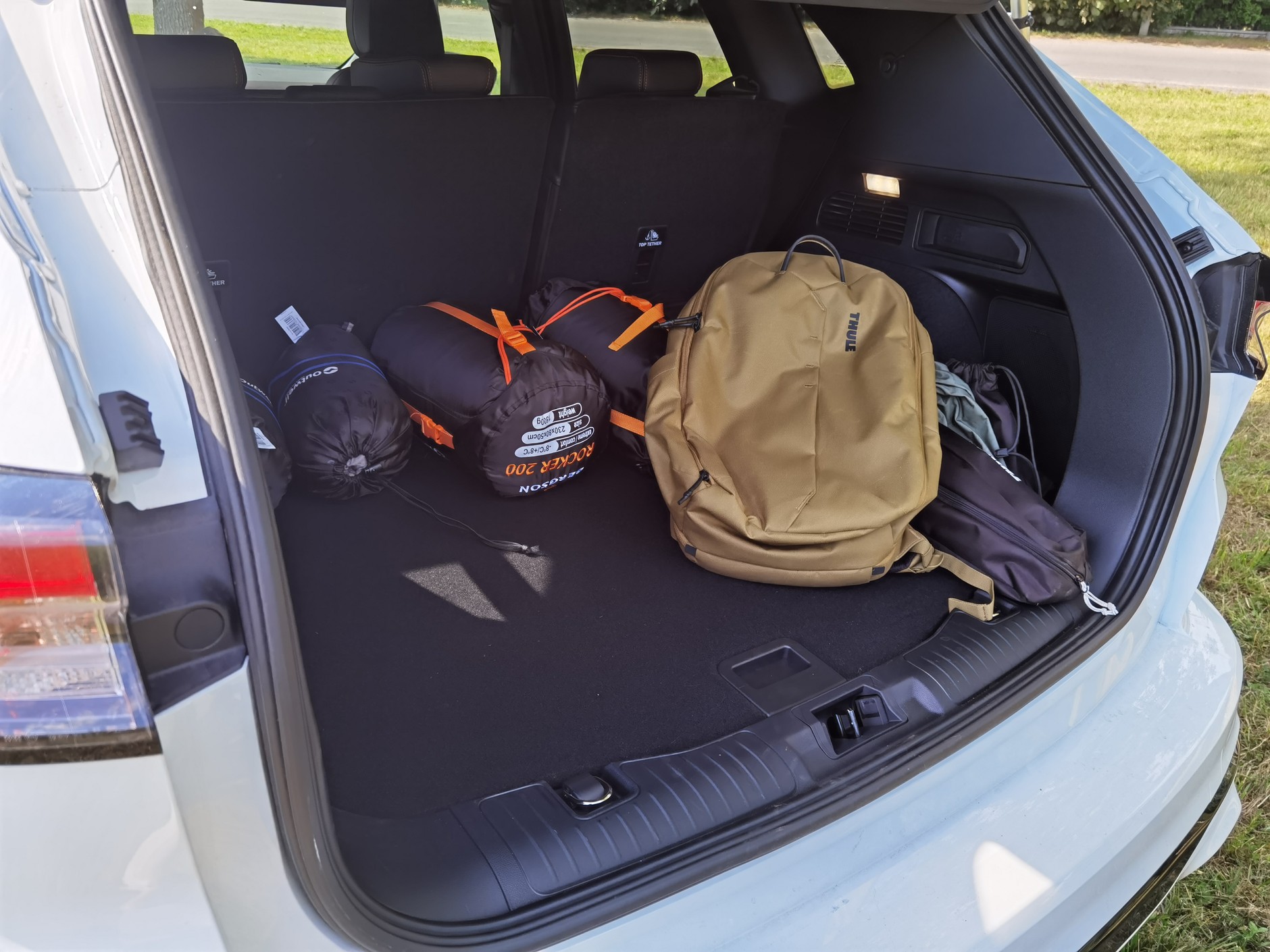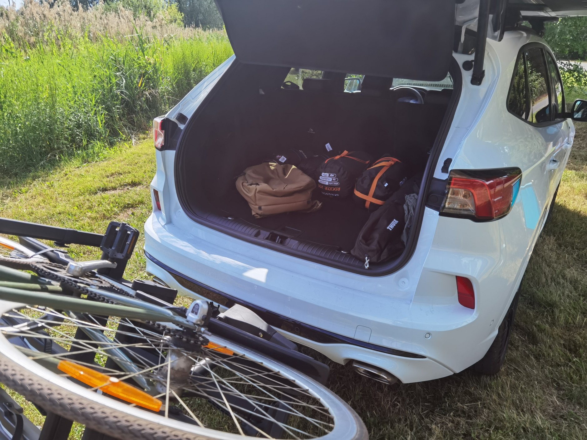 Jedyne, na co trzeba zwrócić uwagę, pakując się do Kugi, to kwestia tego, co zamierzamy zabrać ze sobą na kemping, a dokładniej w jakiej formie. Do skądinąd dużego bagażnika Forda nie zmieścił się bowiem całkiem zwykły drewniany leżak, który chwilę wcześniej "radośnie" leżał sobie w kufrze leciwego japońskiego kompaktu, w najmniej chyba praktycznej odmianie nadwoziowej, jaką jest sedan, mieszcząc się tam na płasko, bez problemów. Tymczasem w bagażniku Kugi zabrakło na niego dwóch, może trzech cm szerokości. Niewiele, ale jednak. Szczęśliwie podróżowaliśmy we dwie osoby, więc wylądował on za przednimi fotelami, ale przy pełnej obsadzie wyjazdu musiałby zostać w garażu. Zatem oprócz tego, że "przed wyruszeniem w drogę, należy zebrać drużynę", warto także sprawdzić, czy wszystko, co chcemy zabrać — po prostu się zmieści, albo zdecydować się na bardziej kompaktową, albo składaną wersję.