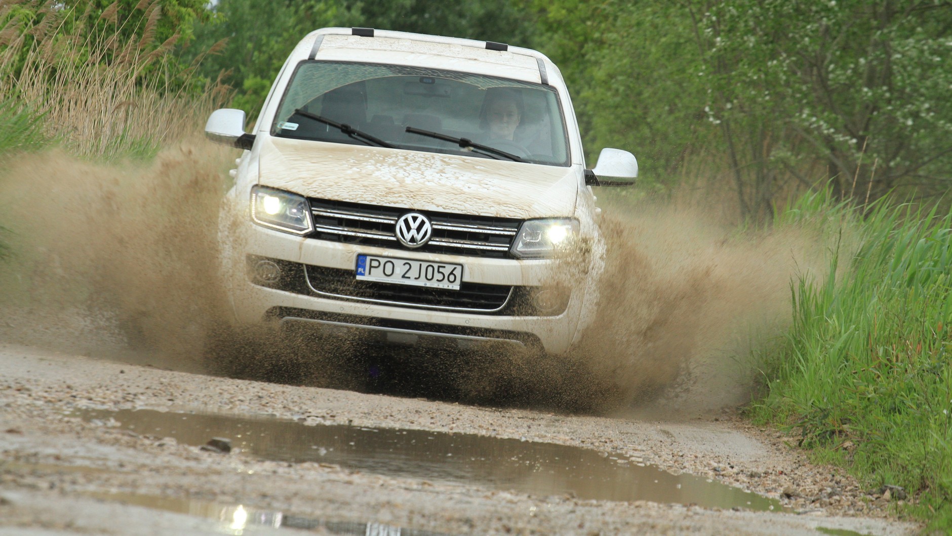 W terenie za to czuje się jak ryba w wodzie, i to mimo braku reduktora. Stały napęd 4x4 z samoblokującym się międzyosiowym mechanizmem różnicowym w połączeniu z wysokim momentem obrotowym i przełożeniem pierwszego biegu w automatycznej skrzyni sprawiają, że nawet poligonowe warunki nie zniechęcają Amaroka do jazdy. Co więcej, w razie potrzeby przyciskiem na konsoli środkowej można włączyć blokadę tylnego dyferencjału, dzięki której grząskie albo piaszczyste podjazdy przestają być poważnymi przeszkodami. Pikapem da się też brodzić do głębokości 50 cm.