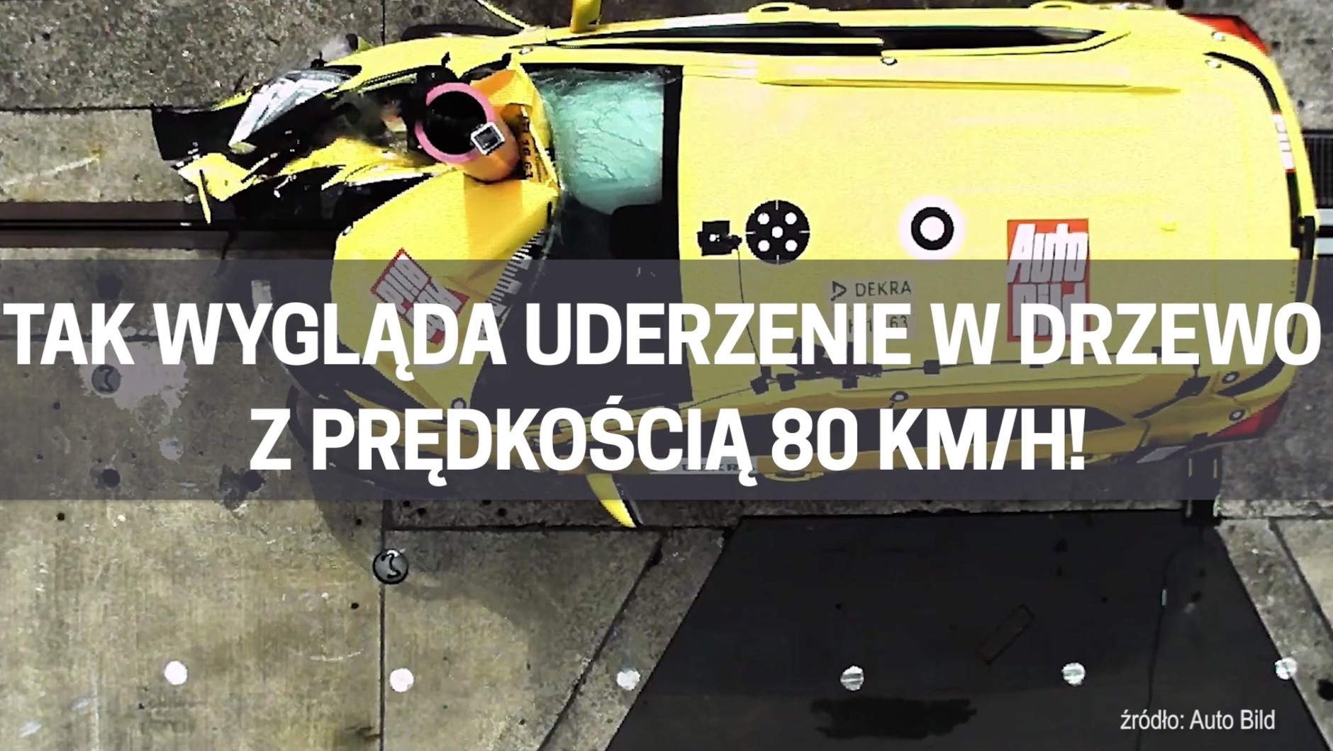 W mgnieniu oka elementy blaszane pogięły się, podłużnice i wzmocnienia uległy naporowi, śruby i mocowania zerwały się, plastiki popękały. Szczątki tego, co jeszcze przed chwilą było samochodem, walają się bezładnie porozrzucane na betonowym podłożu, a Opel Mokka stoi przekręcony o 75 stopni przed słupem imitującym drzewo.