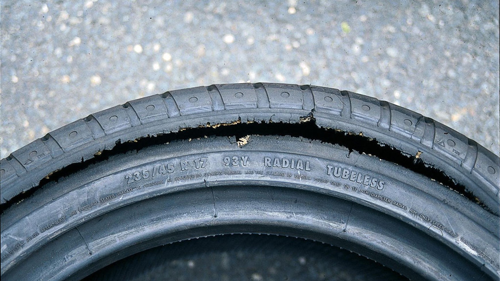 Jazda na niedopompowanych kołach spowodowała przegrzanie opony. Do wyrzucenia!
