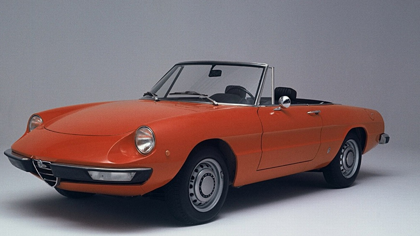 Tylnonapędowy Spider był produkowany od 1955 do 1994 roku. W połowie lat 50. powstały dwie koncepcje modelu - obie projektowane przez znanych stylistów. Wersja Bertone została jednak odrzucona i w efekcie z taśmy zaczęło zjeżdżać auto Pininfariny. Samochód powstał na bazie Giulietty Sprint i od razu zyskał wielu zwolenników. Choć auto było sporo lżejsze od pierwowzoru, miało nieco gorsze osiągi, zwłaszcza podczas jazdy z otwartym dachem. W zależności od wersji - czterocylindrowe jednostki o pojemności 1290 ccm miały moc 80 i 96 KM - prędkość maksymalna wynosiła 155 i 170 km/h. W połowie lat 50. był to dobry wynik. Mocniejsze odmiany miały oznaczenie Veloce (z włoskiego: szybki).
