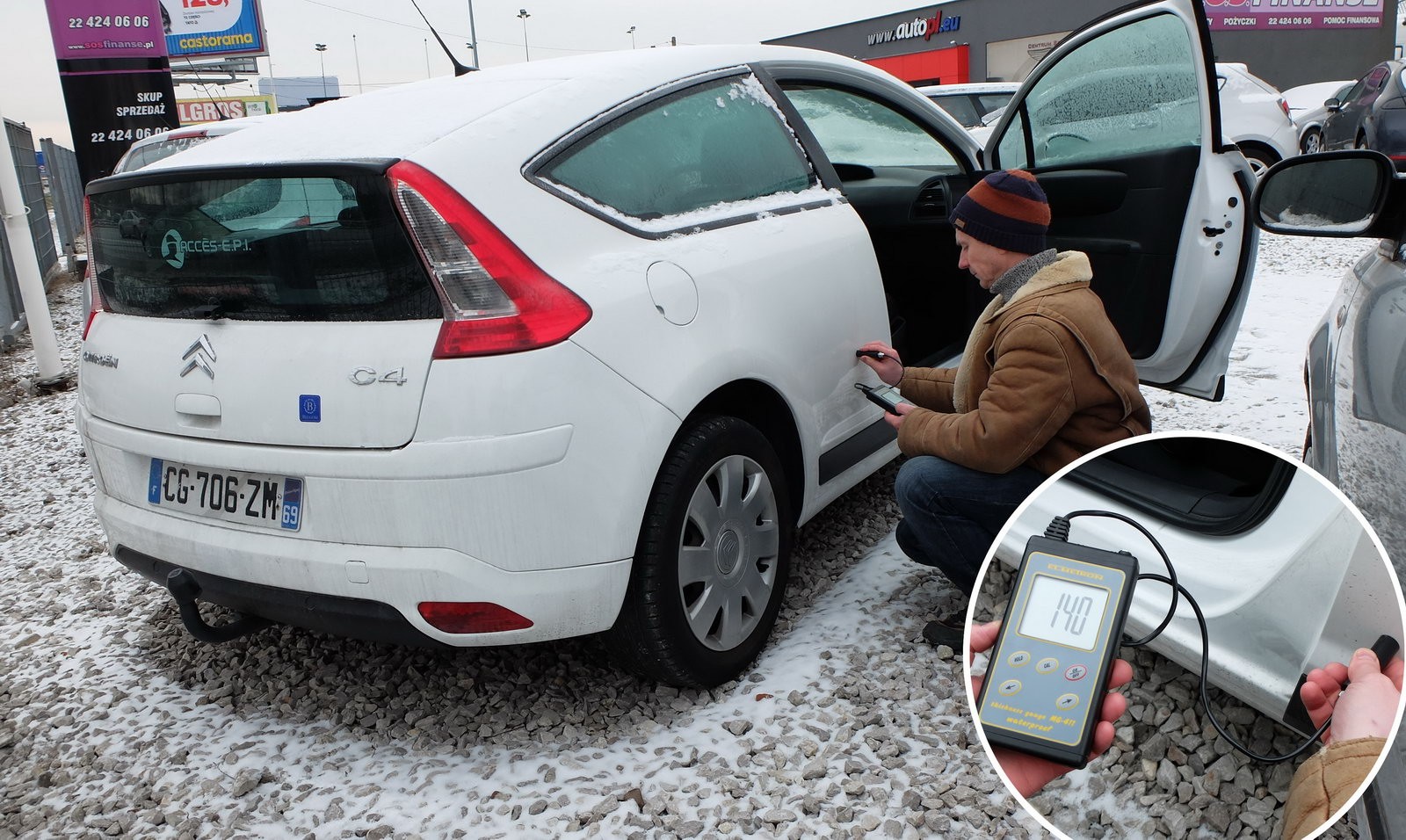 Kontrola lakieru wykazała uszkodzenia prawej strony auta – była ona szpachlowana i malowana. Lewa strona C4 prawdopodobnie ma oryginalny lakier.