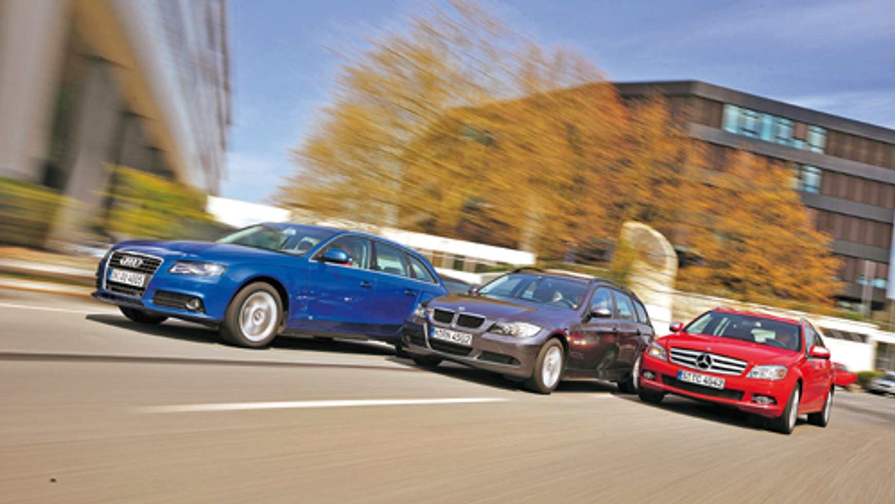 Gdy były nowe, kosztowały 130-140 tys. zł (dziś tyle kosztują kompakty marek wolumenowych), po 10 latach eksploatacji trzeba za nie zapłacić 30-40 tys. zł. Nie powinno więc nikogo dziwić, że to właśnie na rynku wtórnym spełniamy marzenia o posiadaniu prestiżowego kombi klasy średniej, takiego właśnie jak: Audi A4 Avant, BMW serii 3 Touring oraz Mercedes klasy C T. To trio cieszy się dużym zainteresowaniem. Tylko które z nich ma najwięcej zalet? Tym razem do boju stają wersje z popularnymi benzyniakami. I tak, w Audi to silnik 1.8 TFSI/160 KM, w BMW – 2.0/170 KM, a w Mercedesie – 1.8K/156 KM.