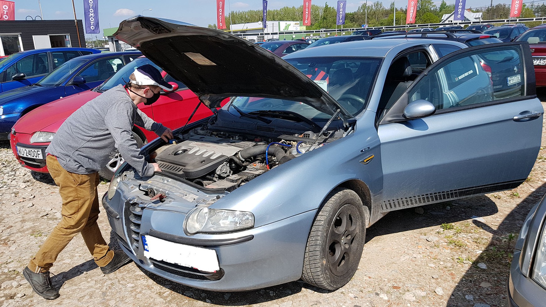 Interesująca propozycja dla młodego kierowcy, np. studenta. Oglądany niebieski egzemplarz prezentuje się całkiem przyzwoicie. W ogłoszeniu czytamy: Samochód utrzymany w nienagannym stanie technicznym i wizualnym – aż tak dobrze nie jest, pod maską widać drobne wycieki, a na progach sporo rdzy. We wnętrzu trochę powinien popracować tapicer, bo w wielu miejscach szwy się prują. Auto z pewnością wymaga zadbania, ale w podwoziu nie ma jeszcze tragedii (czyli dziur), więc może warto? Samochód został sprowadzony do Polski w 2009 r., a diesel to 8-zaworowa wersja o mocy 116 KM. Przegląd aktualny do września, na liczniku widnieje przebieg 140 280 km.<br/><br/>Jeśli mniej liczy się dla was prezencja, obok stała druga Alfa Romeo 147 z tego samego roku (również z dieslem 1.9), z nieco niższą ceną – 3500 zł zamiast 4200 zł. Czerwony lakier był jednak wyblaknięty, znacznie mniej atrakcyjny, a w podwoziu widać więcej rdzawych plam. Tapicerka to materiał, a nie skóra – za to wyraźnie lepiej utrzymana. W ogłoszeniach i komisach sporo jest Alf 147. Jeśli auto jest w dobrym stanie, może być ciekawe – przynajmniej rzadko zaczynało we flocie...<br/><br/>Alfa Romeo 147 1.9 JTD – zalety: ciekawa prezencja, łatwy dostęp do części (również silnikowych), dobra dynamika i własności jezdne (przy sprawnym zawieszeniu).<br/><br/>Alfa Romeo 147 1.9 JTD – wady: trzydrzwiowe nadwozie, sporo korozji w podwoziu, ryzyko dość poważnych (drogich) awarii silnika wysokoprężnego.