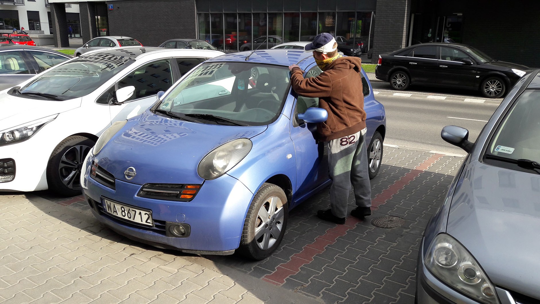 Na to auto trafiliśmy, gdy jechaliśmy obejrzeć jeden z wytypowanych samochodów w komisie. Niebieska Micra z przyklejoną kartką już na pierwszy rzut oka wyglądała nieźle – auto z 2003 r., z deklarowanym przebiegiem 120 tys. km i silnikiem benzynowym 1.4. Bardzo mało rdzy jak na ten rocznik i ten model. Podczas rozmowy z osobą sprzedającą usłyszeliśmy, że to prywatne auto, użytkowane 8 lat, na bieżąco naprawiane, które przegląd przeszło na początku roku. Micra ma kilka usterek, ale generalnie to niezła oferta. Co prawda cena wywoławcza nieco wyższa, jednak sprzedający deklarował otwartość na negocjacje.<br/><br/>Nissan Micra 1.4 — zalety: dobry ogólny stan karoserii i podwozia, samochód na bieżąco serwisowany, bogate wyposażenie, dość dynamiczna jednostka napędowa.<br/><br/>Nissan Micra 1.4 — wady: niesprawna klimatyzacja, uszkodzony mechanizm odchylania fotela pasażera, wysoka cena, choć sprzedający był chętny do negocjacji.
