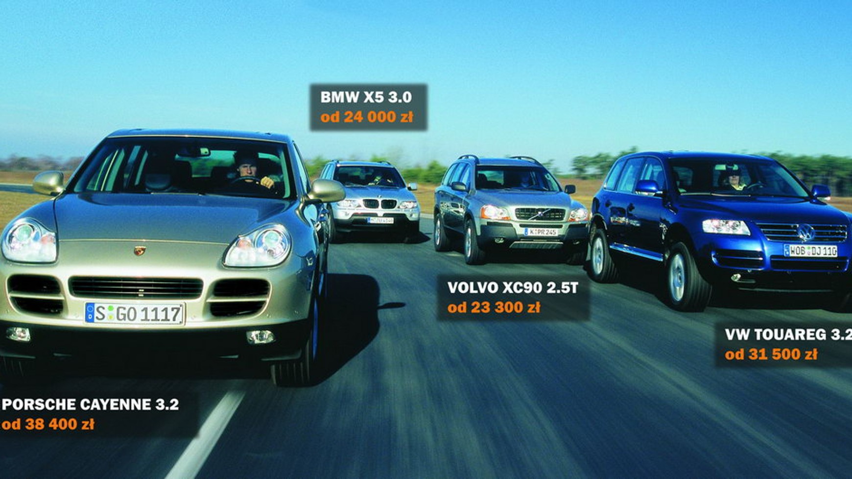 Wszystkie zapewniają prestiż, są luksusowe i eleganckie. Kolejna cecha wspólna to wysokie koszty utrzymania. Bazowe auta z silnikami benzynowymi nie są tu wyjątkiem. Są też spore różnice: BMW to auto dla ambitnego kierowcy, Porsche – luksusowa odmiana Touarega, VW – wszechstronny typ, który każdemu chce się przypodobać. Volvo okazuje się ponadprzeciętnie wygodne i pojemne. Dla każdego (bogatego) coś dobrego!