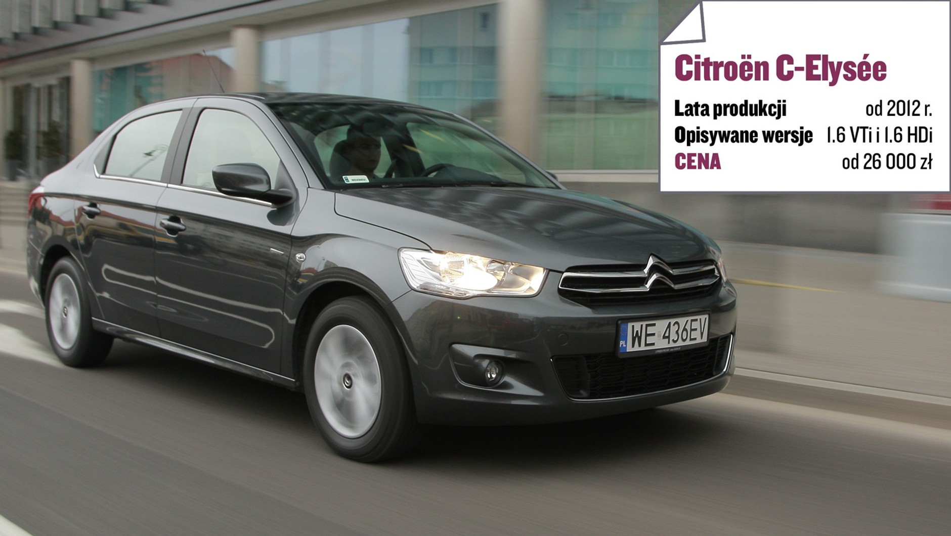 Citroën C-Elysée - to nam się podoba: przestronne wnętrze i bagażnik, akceptowalne wyposażenie, niezła trwałość mechaniczna (również silnika 1.6), niskie zużycie paliwa, spory procent aut od 1. właściciela z Polski. Citroën C-Elysée - to nam się nie podoba: problemy z elektroniką pedału gazu, możliwe usterki diesla, przeciętne prowadzenie (miękkie zawieszenie, nieprecyzyjny układ kierowniczy), ograniczony wybór.