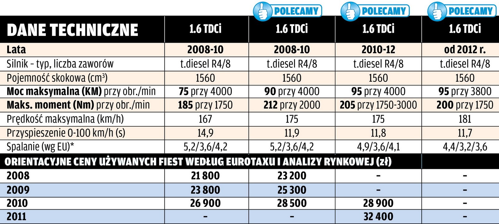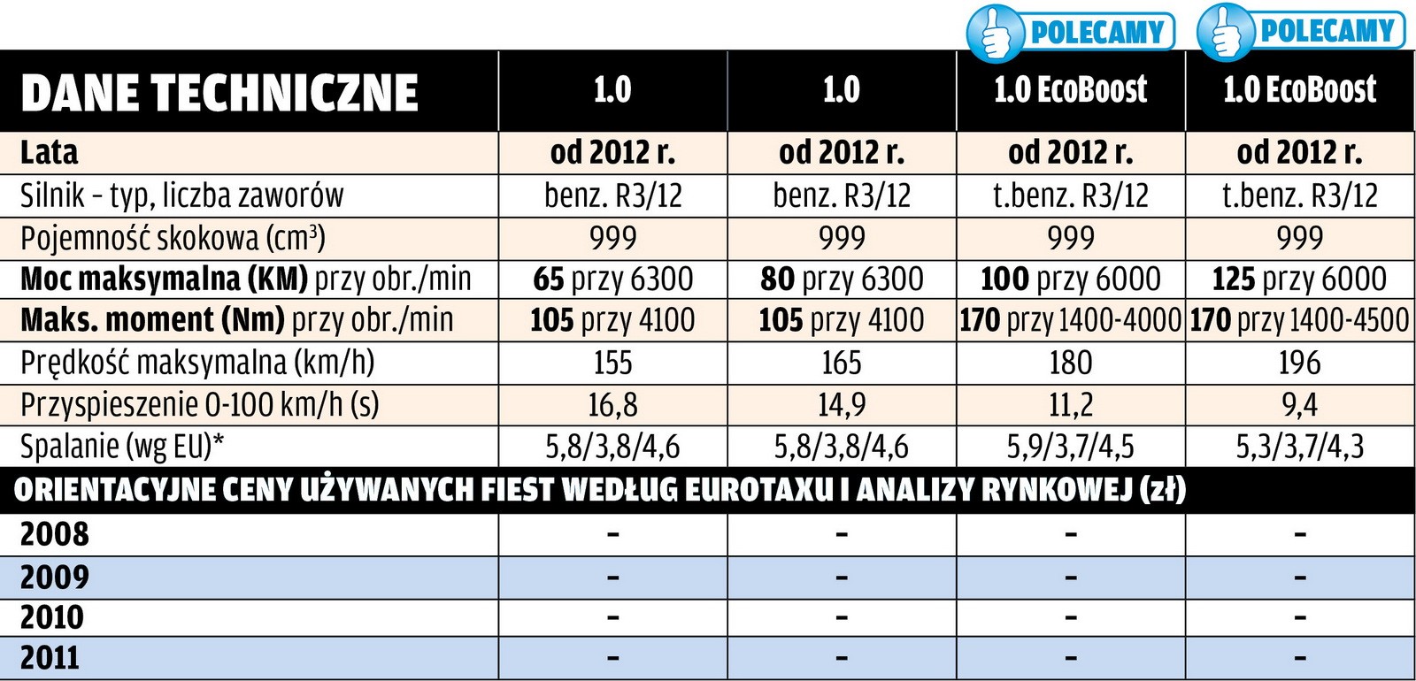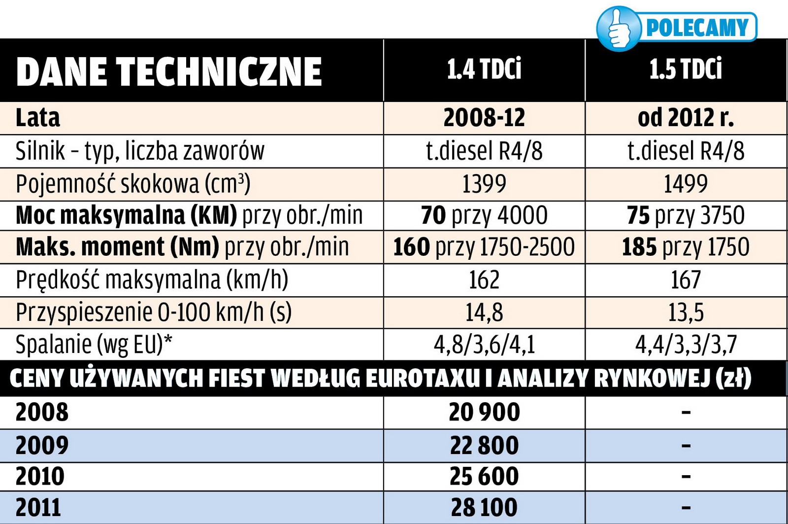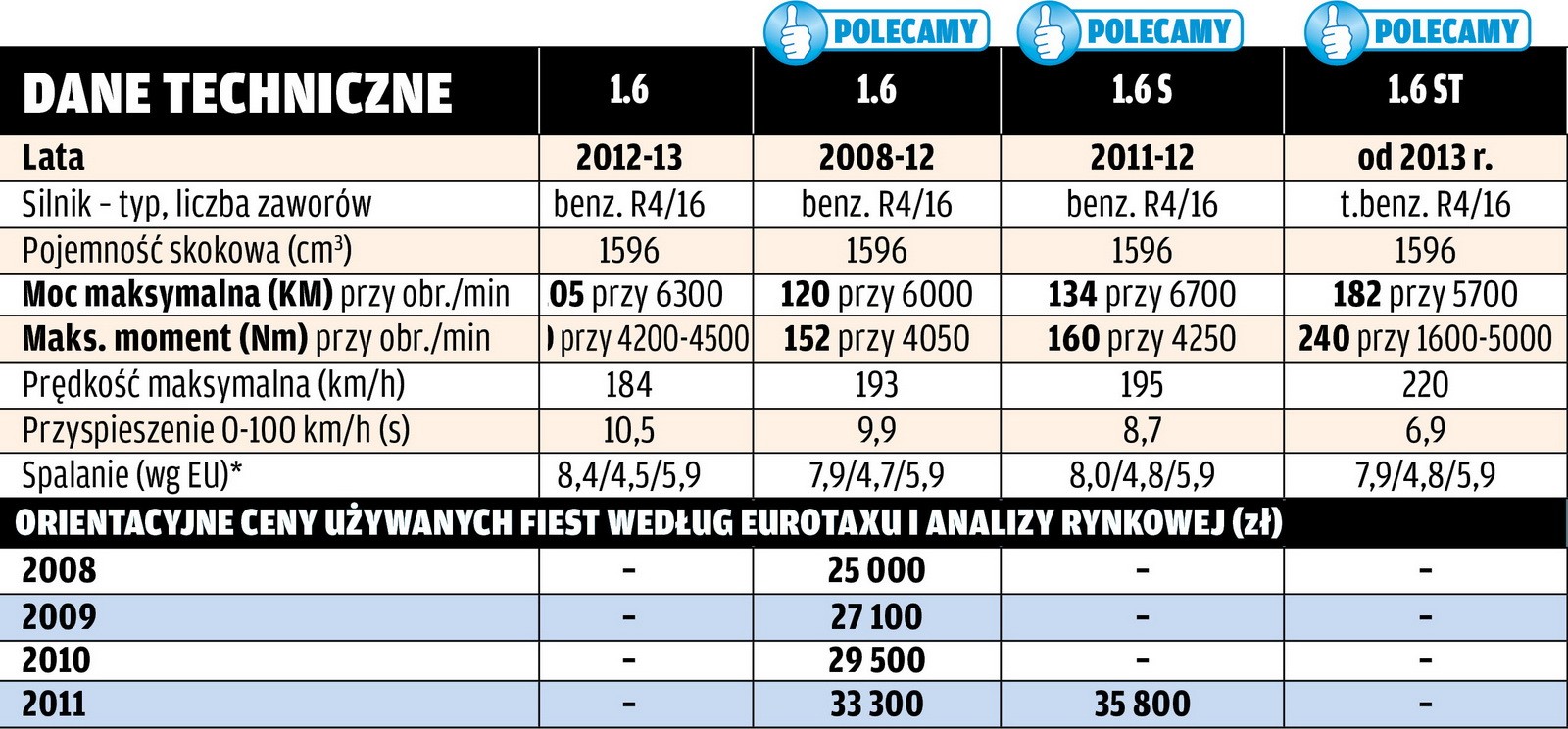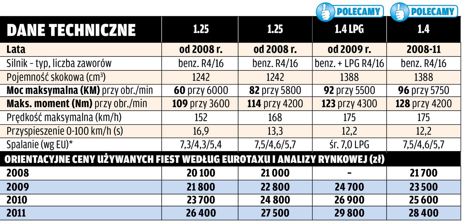 | *dane dla Forda Fiesty 1.4 z 2009 r. | ||