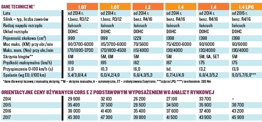 Opel Corsa E nieźle wygląda, a do tego zapewnia użyteczność typową dla nowoczesnego samochodu klasy B (dość przestronne wnętrze, bagażnik porównywalny z konkurencyjnymi modelami). Ceny używanych egzemplarzy są wyraźnie niższe niż 2-3 lata temu (Corsę kupicie już za 26 tys. zł), a większość z nich nie ma jeszcze dużych przebiegów. Stosunkowo łatwo jest znaleźć samochód pochodzący z polskiego salonu, który miał do tej pory tylko jednego właściciela. Niewiele jest też aut poflotowych.