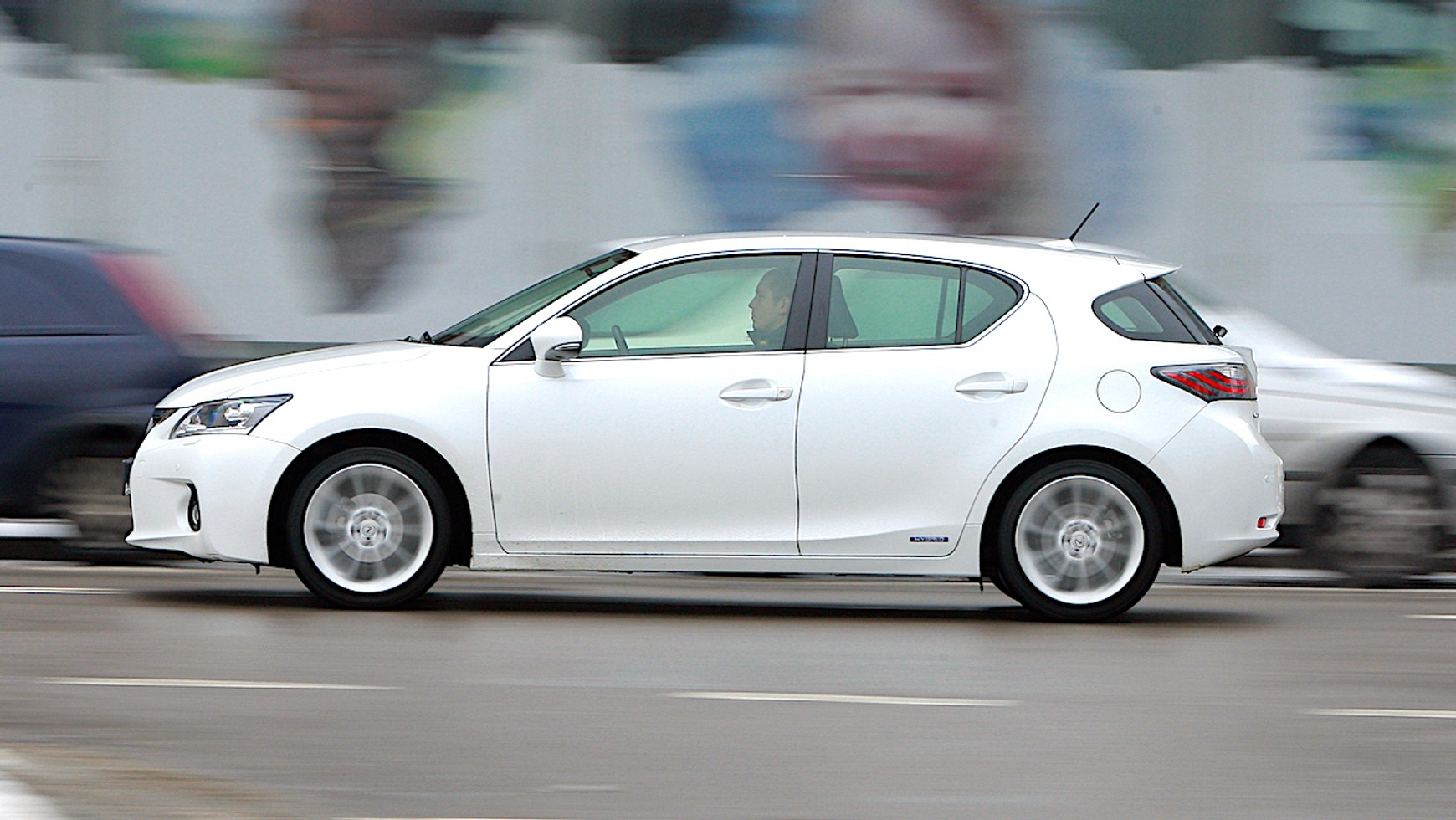 Jeśli chodzi o samą jazdę, to przede wszystkim należy podkreślić bardzo dobre wyciszenie kabiny (szczególnie jak na samochód kompaktowy). W czasie spokojnej jazdy w zasadzie nie słychać układu napędowego. Co innego dynamiczna jazda, zwłaszcza podczas przemierzania dróg szybkiego ruchu. Wtedy daje o sobie znać bezstopniowa skrzynia biegów, której praca przypomina rozciąganie gumki od majtek – po mocniejszym wciśnięciu pedału gazu napęd wyje, ale przyspieszanie jest raczej mizerne. Taka jazda ma też drugą słabą stronę – spalanie! O ile w mieście, gdzie często się hamuje i przyspiesza (odzyski energii są więc duże), Lexus CT 200h pali naprawdę mało (dzięki ekojeździe można zejść do ok. 4,5 l/100 km, podczas normalnej jazdy – ok. 5,5 l/100 km), o tyle na autostradzie trzeba przygotować się na zużycie 7-7,5 l/100 km. Wtedy też ma znaczenie stosunkowo niewielki, 45-litrowy zbiornik paliwa (konieczność częstego tankowania). Dynamika? Zupełnie wystarczająca w warunkach miejskich, poza miastem przydałoby się o kilka koni mechanicznych więcej (łączna moc układu w CT 200h wynosi 136 KM; "setka" po 10,3 s). Generalnie, jeśli chodzi o dynamikę, można poczuć pewien niedosyt – o ile pracy układu hybrydowego sprzyja spokojna, relaksacyjna jazda, o tyle zestrojenie zawieszenia jest bliższe samochodom z sportowym zacięciem. Zresztą przy okazji pierwszego liftingu (auta na rok modelowy 2014) sprężystość układu jezdnego nieco złagodzono.