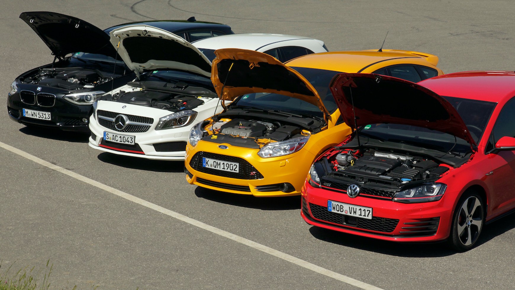 BMW 125i, Ford Focus ST, Mercedes A 250 Sport i VW Golf GTI – dane techniczne