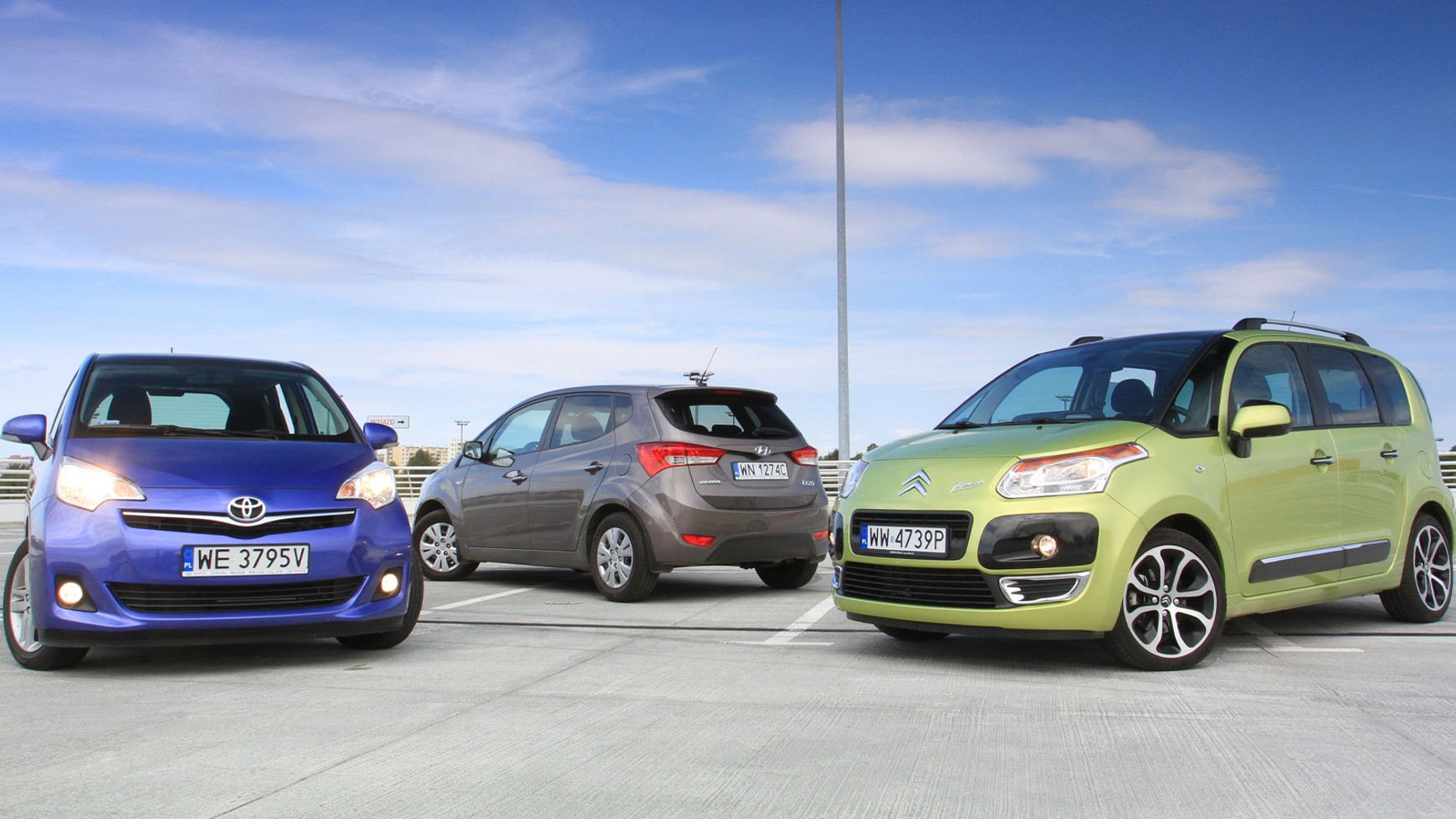 Zaraz, zaraz, co to za dobór aut – spytacie? Czy ix20 nie jest SUV-em (czy też modnym crossoverem), a Verso vanem, ale kompaktowym? Już odpowiadamy – nie ma tu pomyłki. Jako pierwsze z opisywanych na rynku pojawiło się C3 Picasso. Model należy do tzw. segmentu B-MPV i firma liczyła, że odniesie sukces na miarę Xsary Picasso czy C4 Picasso. Kolejny dołączył Hyundai. Model ix20 zdecydowanie kojarzy się z linią SUV-ów (mamy przecież ix35 i ix55), ale producent chciał w ten sposób nawiązać do designu pokazanego chwilę wcześniej wspomnianego ix35 (Fluidic Sculpture, czyli opływowa rzeźba). A crossover w tym modelu oznacza połączenie vana z miejskim autem. Zresztą wystarczy porównać gabaryty, żeby nie mieć wątpliwości, jak sklasyfikować ten model. Z kolei w przypadku Toyoty bardzo istotna jest litera "S" w nazwie. Auto ma nawiązywać do większych braci, ale "S" oznacza Small, Smart i Spacious, czyli nieduża, inteligentna i przestronna. Czyli wypisz wymaluj segment B-MPV.