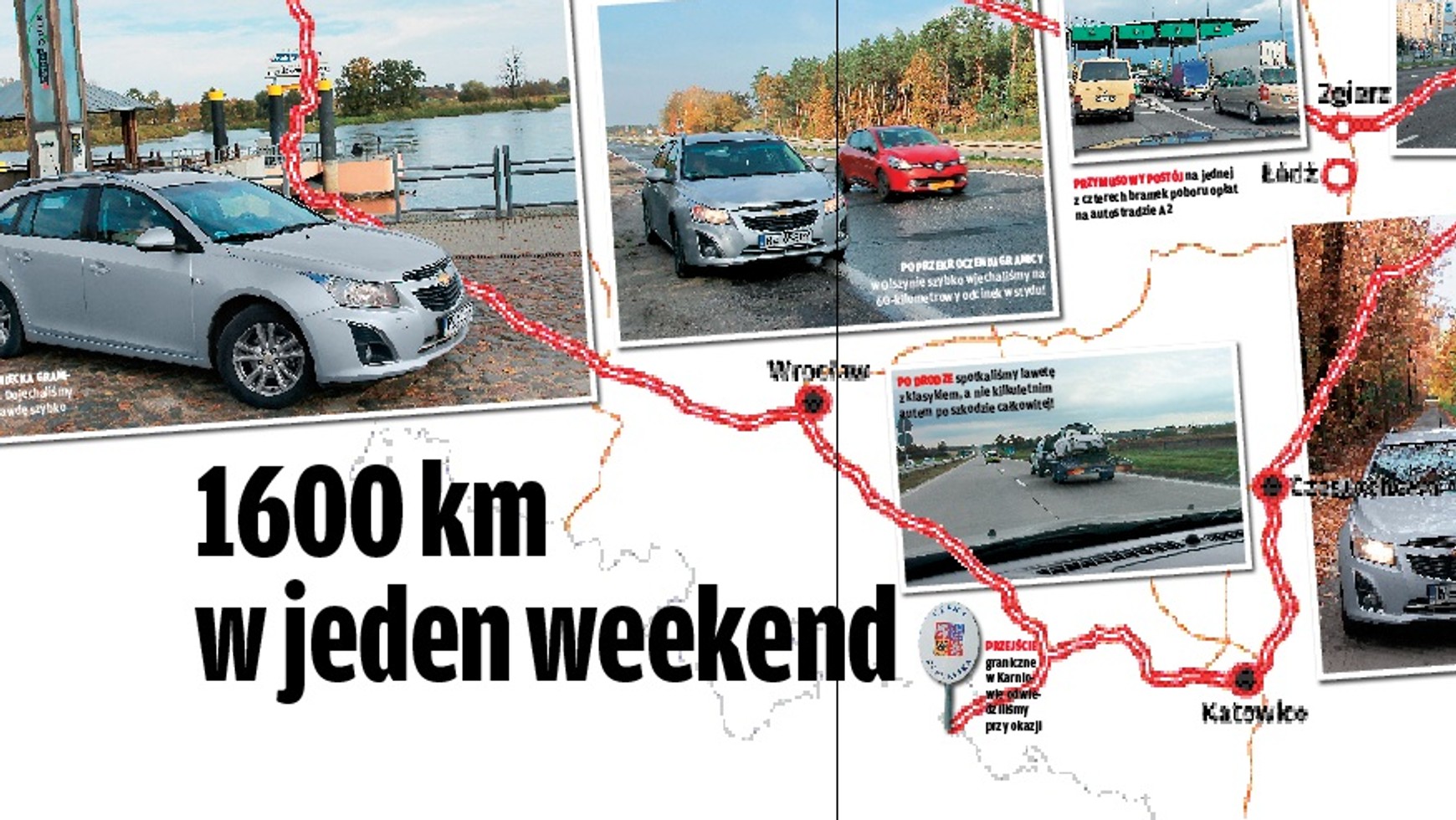 Zdecydowaliśmy się na typową jazdę na długim dystansie – szybką, ale też oszczędną. Najpierw naszym celem był Frankfurt nad Odrą (oddalony od Warszawy o 478 km), następnie: Wrocław, Katowice i powrót do Warszawy przez Częstochowę. Z Warszawy wyjechaliśmy w piątkowe popołudnie, gdy jeszcze nie było dużego tłoku na ulicach. Szybko dotarliśmy do S8 i dalej autostradą A2 udaliśmy się w kierunku zachodniej granicy. Przez pierwszą część (ok. 100 km) staraliśmy się jechać naszym Cruze’em z prędkością do 120 km/h, ale już kolejne kilometry pokonaliśmy nieco szybciej. Mogliśmy więc zbadać średnie zużycie paliwa – z 6,7 l/100 km wzrosło do 8,5 l/100 km – i dynamikę auta (średnio obciążonego). Do 120 km/h Cruze okazuje się dynamiczny, przy ok. 140 km/h jego animusz nieco gaśnie, ale nadal nie jest źle.
