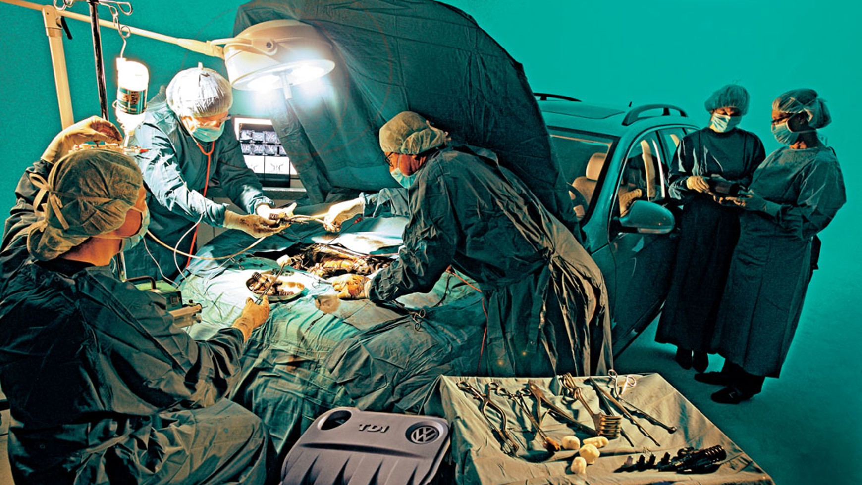 Każdy chory oczekuje troskliwej opieki i pozytywnych wyników terapii. Zacznijmy więc od dobrych wiadomości. Po zdemontowaniu układu napędowego okazało się, że jest on w doskonałym stanie technicznym. Zarówno cylindry, jak i tłoki mają odpowiednie wymiary, zapewniające właściwą pracę silnika. Mniej zaufania wzbudzają rysy powstałe wskutek naprężeń i temperatury głowicy turbodiesla. Technicy VW w ogóle się tym nie przejęli. Według nich nie mają one wpływu na pracę silnika, poza tym po jego rozgrzaniu zasklepiają się. Bez komentarza. O wiele lepiej wyglądają elementy dwusprzęgłowej skrzyni DSG. Koła zębate, sprzęgła oraz pozostałe elementy – jak nowe! Zabezpieczenie przed korozją jest dobre, obsługa w serwisie – kiepska.