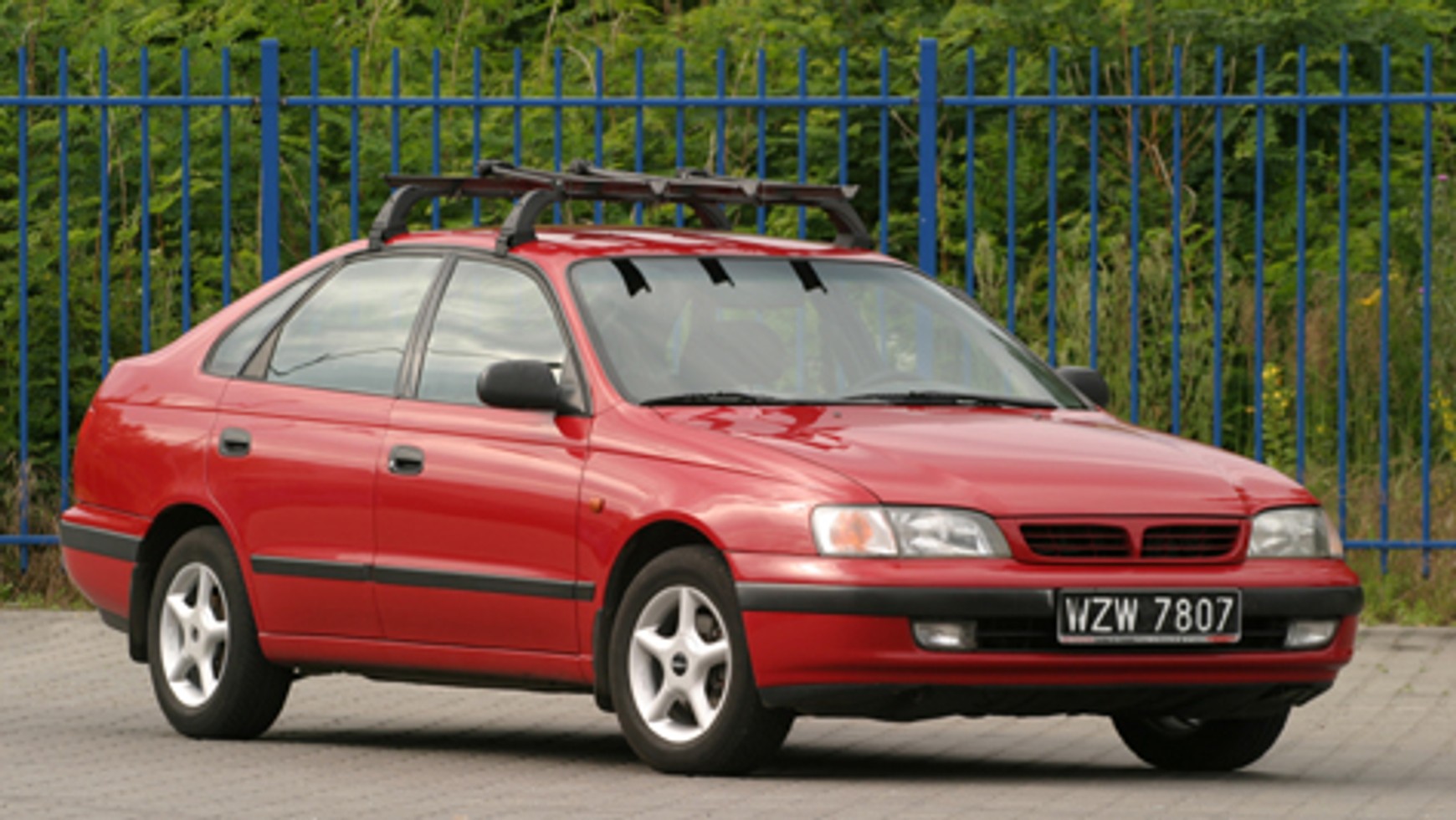 Co ciekawe, w przypadku Toyoty Cariny E za około 10 tys. zł wciąż można znaleźć interesujące i doinwestowane auto z końca produkcji. Poza tym jest duża szansa, że osoba sprzedająca Carinę związała się z nią na dłuższy czas i dbała o regularny serwis. Ten model ma dobrą opinię wśród mechaników, nawet pomimo tego, że pochodzi głównie z brytyjskich zakładów Toyoty.Toyotę Carinę spotkamy w wersjach: sedan (poj. bagażnika 545 l), liftback (470/1250 l) oraz kombi (485/1510 l). Każda z nich zadowoli dużą rodzinę. W kabinie jest bowiem sporo miejsca. Oczywiście, deska rozdzielcza może wydawać nieprzyjemne dźwięki, a część elementów wyposażenia wnętrza już nie działać, ale nawet w starych Carinach docenimy wytrzymałość foteli, zaś w wersjach po face liftingu – także ich wygodę. Czasem mogą odmówić posłuszeństwa tuleje wycieraczek, w niektórych egzemplarzach występują również problemy z działaniem skrzyń biegów.Na rynku dominują benzynowe wersje 1.6 o mocach 99, 107 lub 115 KM. Polecamy je z wyjątkiem odmiany przystosowanej do spalania ubogiej mieszanki (nazwa handlowa Lean Burn), która miewa problemy z sondą lambda.