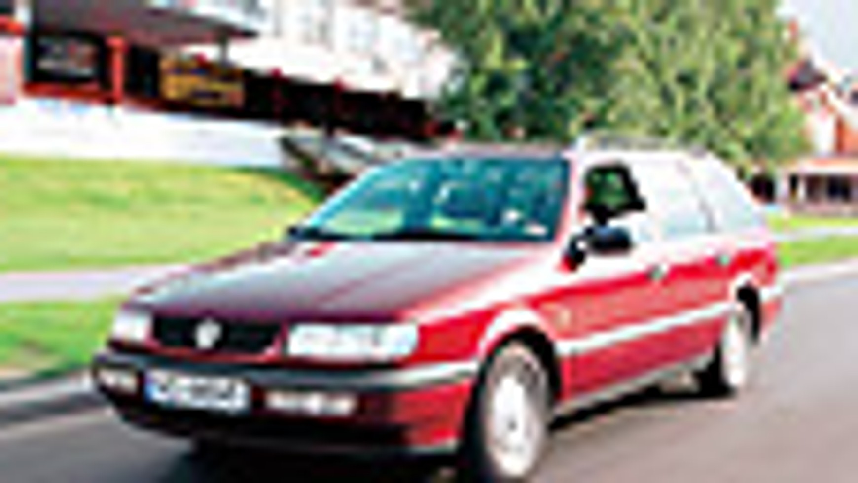 km. Nic w tym dziwnego, gdyż jeszcze do niedawna nawet nasi zachodni sąsiedzi rzadko pozbywali się tego modelu - szczególnie z silnikiem TDI w praktycznej wersji kombi. A jeśli nawet decydowali się na sprzedaż, powodem nie była awaryjność, a chęć zmiany modelu na nowy, co w znacznym stopniu wpływa na status społeczny kierowcy. Pod względem użytkowym ten samochód nie tylko bije na głowę rywali z połowy lat 90. Nawet obecnie napędziłby wstydu niejednemu przedstawicielowi klasy średniej! Szczególnie wręcz rozrzutna ilość miejsca na nogi osób drugiego rzędu siedzeń w pełni to potwierdza. Zadowalający komfort poczują również pasażerowie zajmujący przednie fotele. Dużo jest przestrzeni nad głowami i na szerokość w kabinie. Gorzej prezentuje się wykończenie wnętrza. Nie każdemu przypadnie do gustu ciemna kolorystyka nieco sfatygowanych plastików i obić tapicerskich spotykanych w wielu egzemplarzach. Przetarcia tkaniny fotela kierowcy, łuszcząca się farba z rączek drzwi czy zarysowania na plastiku spotyka się coraz częściej. Jednak najintensywniej o latach produkcji przypomina deska rozdzielcza. Co prawda nie można mieć żadnych zastrzeżeń do jej czytelności i ergonomii, ale stylizacja tablicy zegarów z diodowymi kontrolkami jest po prostu niedzisiejsza. Zastrzeżenia można mieć także do niepodświetlonego włącznika świateł awaryjnych na kolumnie kierownicy. Wspomaganie, wygodne i sprężyste fotele oraz dobrze wyprofilowana kanapa z naddatkiem rekompensują te drobne dolegliwości. Oprócz komfortu jazdy na uwagę zasługują własności trakcyjne. Mocne strony Passata to stabilna jazda na wprost, łagodne wchodzenie w zakręty, z niewielką skłonnością do nadsterowności. Sam komfort resorowania zadowoli wielu użytkowników, gdyż auto dobrze czuje się w różnych warunkach.Jednak styl i charakter trzeciego wydania Passata w wersji Variant należy ocenić pod kątem walorów użytkowych. Cel zaprojektowania auta jak najbardziej funkcjonalnego w pełni osiągnięto. Bez składania asymetrycznie dzielonej kanapy (za dodatkową opłatą) objętość bagażnika jest duża - 465 l. Po złożeniu oparcia, siedzisk i załadowaniu po dach kufra osiągnąć można równe 1500 l. Wykorzystanie sporej pojemności umożliwia duża ładowność (555 kg). Passat nieźle wypada jako "koń pociągowy". Może ciągnąć przyczepę o masie 1200 kg, wyposażoną w hamulec. Poza tym projekt przestrzeni bagażowej zasługuje na całkiem dobrą ocenę za formę, ukształtowanie i wykończenie. Łatwy załadunek i wyładunek są możliwe dzięki nisko poprowadzonej krawędzi i ogromnej pokrywie bagażnika unoszonej na wysokość 1,80 m. Powierzchnia ładowania ma płaską podłogę, a obrzeża regularny kształt. Boczki zabudowano plastikiem twardym i podatnym na zarysowania, ale grubym oraz odpornym na uszkodzenia. Z szerokiej gamy silnikowej Passata godny polecenia jest właśnie turbodiesel z bezpośrednim wtryskiem paliwa 1.9 o mocy 90 KM. Ten sam motor po drobnych modernizacjach możemy spotkać np. w Skodzie Octavii pierwszej generacji. To konstrukcja bazująca na udanej jednostce 1.9 D/64 KM. Na początku lat 90. wtrysk bezpośredni stanowił nowatorskie podejście do układów zasilania diesli (wcześniej był zarezerwowany dla pojazdów użytkowych). Rozwiązanie to ma wady i zalety. Z jednej strony zmniejsza zużycia paliwa o 15 proc. (w stosunku do klasycznego turbodiesla), z drugiej zaś charakteryzuje się niską kulturą pracy i wydziela do atmosfery więcej szkodliwych substancji. Z zanieczyszczeniami poradzono sobie przez zastosowanie układów katalitycznych (rzadko spotykanych), natomiast z hałasem - przez użycie gumowych łożysk amortyzujących wibracje. Nieprzyjemne efekty akustyczne stłumino grubszym "wykończeniem" komory silnika. W praktyce hałas pracy jednostki nie staje się uciążliwy i rzadko osiąga wysoki poziom. Jedynie przy zimnym rozruchu i na biegu jałowym motor staje się słyszalny. Jednak te drobne dolegliwości rekompensuje oszczędna eksploatacja. 90-konny Passat TDI zapewnia podobne lub nawet lepsze osiągi niż jednostki benzynowe o tej samej mocy. Auto "setkę" osiąga w mniej niż 15 s, natomiast na piątym biegu od 80 do 120 km/h przyspiesza w ok. 20 s. Nie są to wartości mogące wskazać na niepohamowany temperament rodzinnego i bardzo praktycznego kombi, ale mimo to niecierpliwi kierowcy nie powinni zbytnio narzekać. Jeszcze bardziej różnice dzielące TDI od klasycznygo turbodiesla uwidocznią się podczas wizyt pod dystrybutorem. Średnie spalanie na poziomie 5,5 l/100 km ciężkiego Passata to wynik więcej niż zadowalający. W zakresie bezpieczeństwa biernego Passat 1.9 TDI oferuje dwa airbagi oraz wzmocnienia w drzwiach i przedniej części auta. W przypadku ochrony czynnej podróżnych można liczyć na system ABS, a także na przyzwoitą wydajność hamulców. Droga zatrzymania ze 100 do 0 km/h wynosi niecałe 43 m - to wynik nie najgorszy na tle rywali z tego okresu.Opinia mechaników i właścicieli modelu jest bardzo pozytywna. Egzemplarze zadbane, z pewnych rąk i regularnie serwisowane powinny wiernie "służyć" użytkownikowi. Silnik TDI nie należy do nadmiernie kłopotliwych w eksploatacji. Trzeba tylko przygotować się na wymianę przepływomierza powietrza co ok. 90-120 tys. km i pamiętać o skróceniu interwału okresowej wymiany paska rozrządu z 90 do 60 tys. km - potrafi pęknąć po 80 tys. km. Warto też zwrócić uwagę na turbinę (bywały przypadki uszkodzenia jej) oraz skontrolować przewód od serwa hamulców - niekiedy dochodziło do rozszczelnienia go.Sam układ przeniesienia napędu należy do mocnych punktów modelu. Sprzęgło zazwyczaj wymaga wymiany dopiero po przejechaniu grubo ponad 200 tys. km, podobne przebiegi dotyczą półosi napędowych - choć to w dużej mierze zależy od stylu jazdy. Inne elemety eksploatacyjne, jak: tarcze hamulcowe, klock