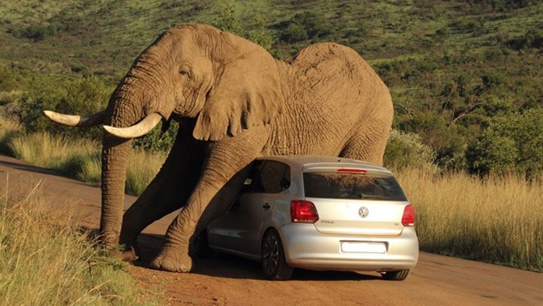 Taka sytuacja wydarzyła się naprawdę, a przeżyli ją turyści podczas afrykańskiego safari. Wystarczyło zatrzymanie na kilka minut Volkswagena Polo, by niespodziewanie nad pojazdem pojawił się wielki słoń. Jak się okazało, zwierzę chciało się podrapać po brzuchu.