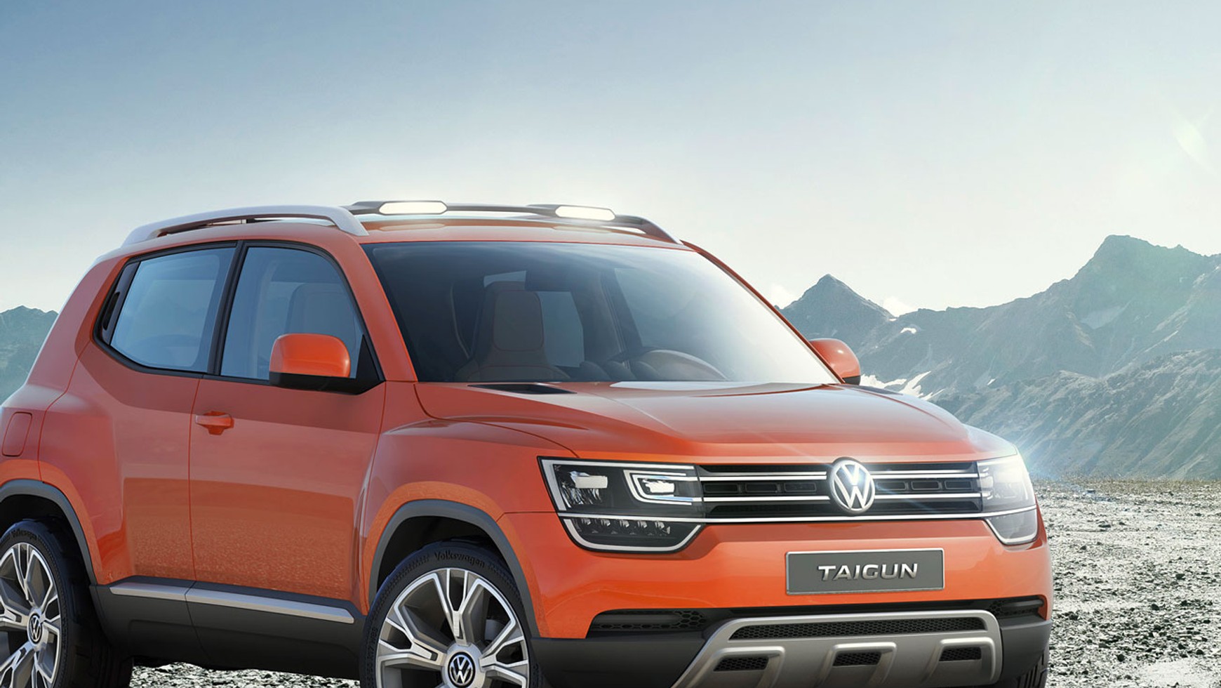 Styliści projektując przód Taiguna świadomie nawiązali do większych terenowych Volkswagenów – Tiguana i Touarega. Diodowe światła dzienne okalają osłonę chłodnicy i również podkreślają szerokość Taiguna. W zderzak wbudowana została metalowa osłona podwozia. Charakterystycznym elementem tylnej części nadwozia jest umieszczone na zewnątrz koło zapasowe.