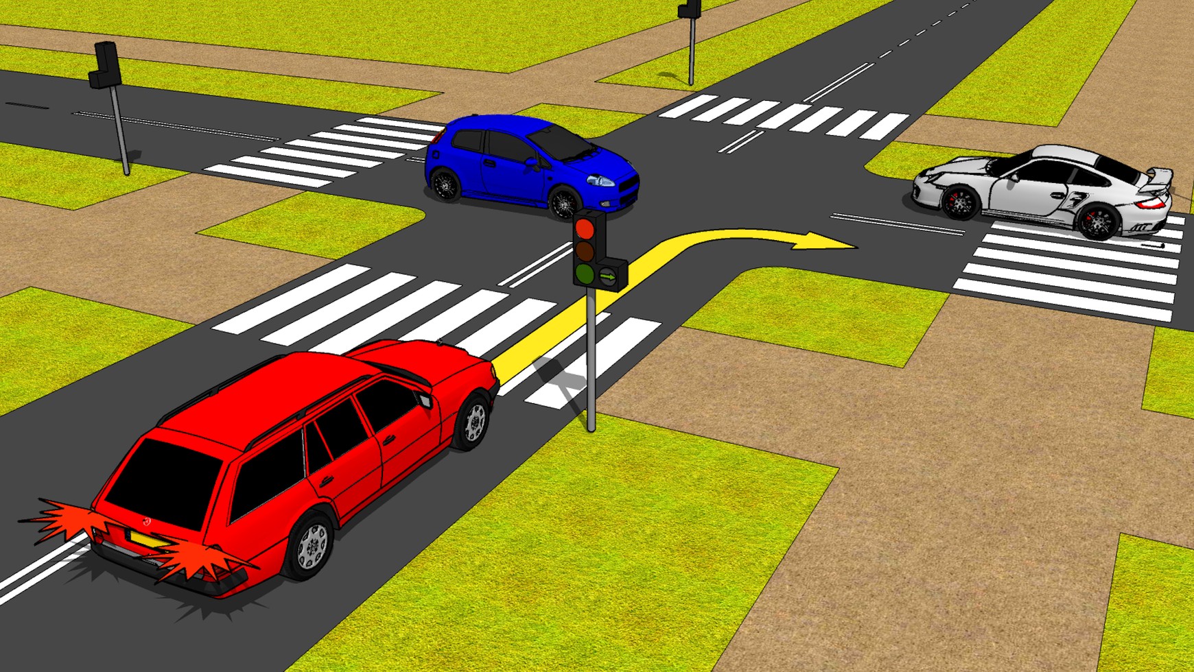 Przepis mówi: "1. Kierujący pojazdem, zbliżając się do skrzyżowania, jest obowiązany zachować szczególną ostrożność i ustąpić pierwszeństwa pojazdowi nadjeżdżającemu z prawej strony, a jeżeli skręca w lewo – także jadącemu z kierunku przeciwnego na wprost lub skręcającemu w prawo". Ale, uwaga! "2. Przepisu ust. 1 nie stosuje się do pojazdu szynowego, który ma pierwszeństwo w stosunku do innych pojazdów, bez względu na to, z której strony nadjeżdża". Nieco inna sytuacja jest na skrzyżowaniach z sygnalizacją świetlną – na nich skręcający tramwaj ma obowiązek ustąpić pierwszeństwa pojazdom jadącym na wprost (o ile oczywiście mają one zielone światło).