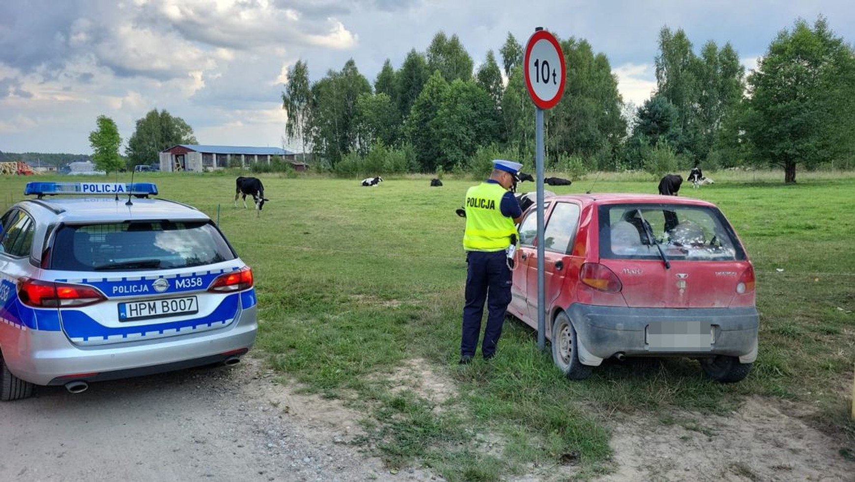 Kierowca nie zastosował się jednak do wysyłanych sygnałów, ominął mundurowych i zaczął uciekać. W pewnym momencie samochód wjechał do miasta, gdzie tam stworzył zagrożenie dla innych zmotoryzowanych, a także dla pieszych. Po około 5 kilometrach podróż samochodem zakończyła się na pastwisku.