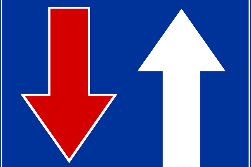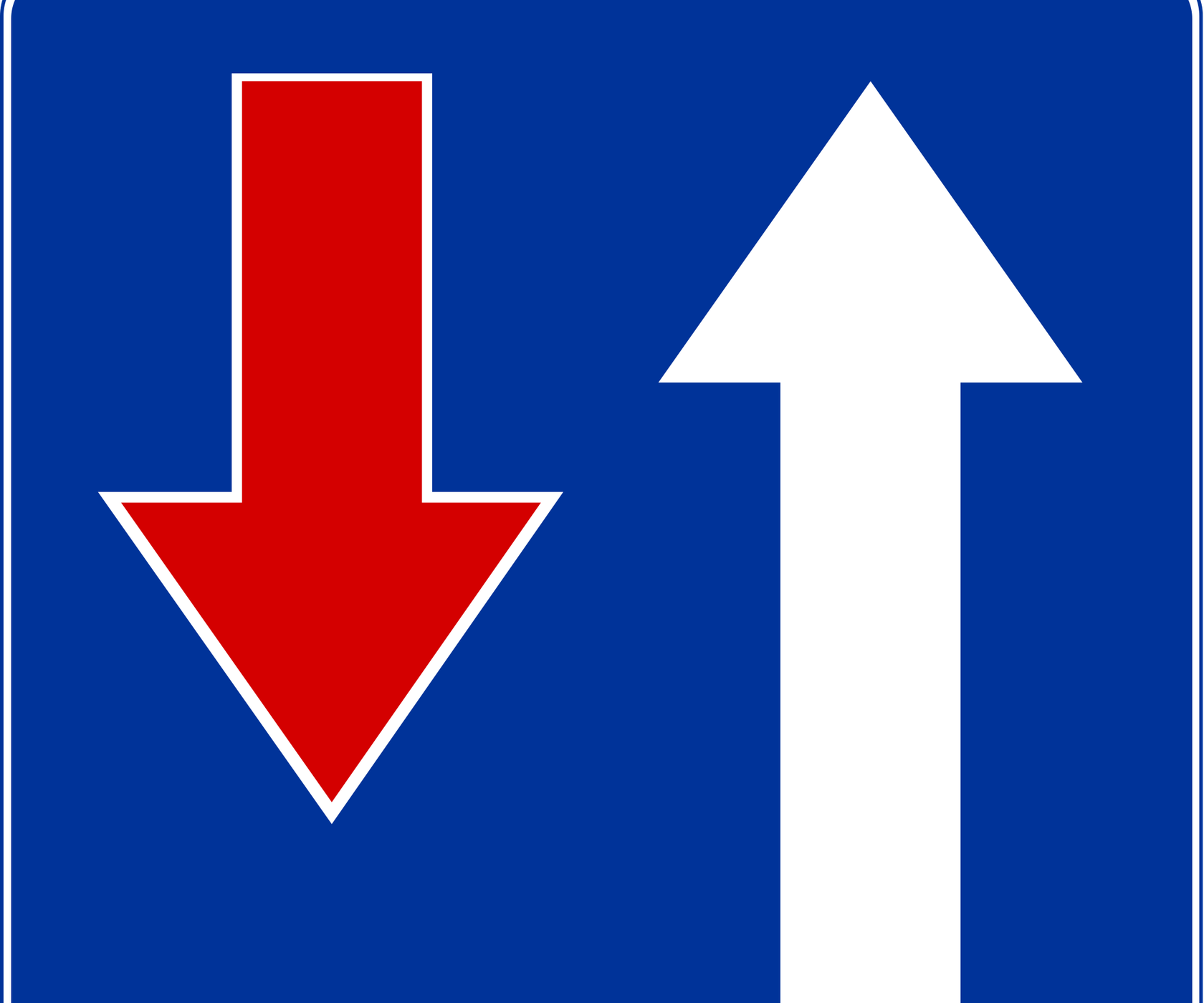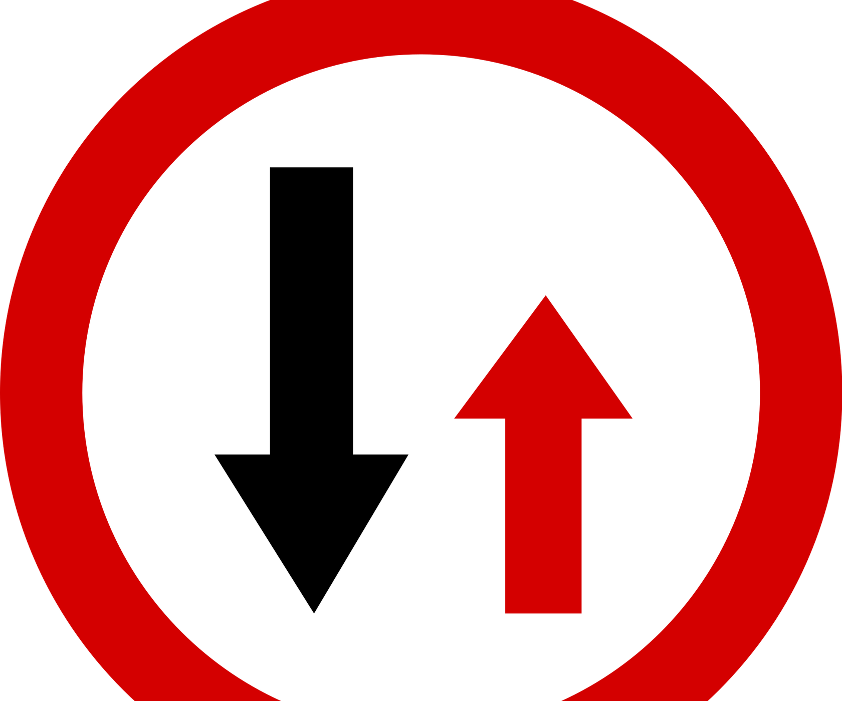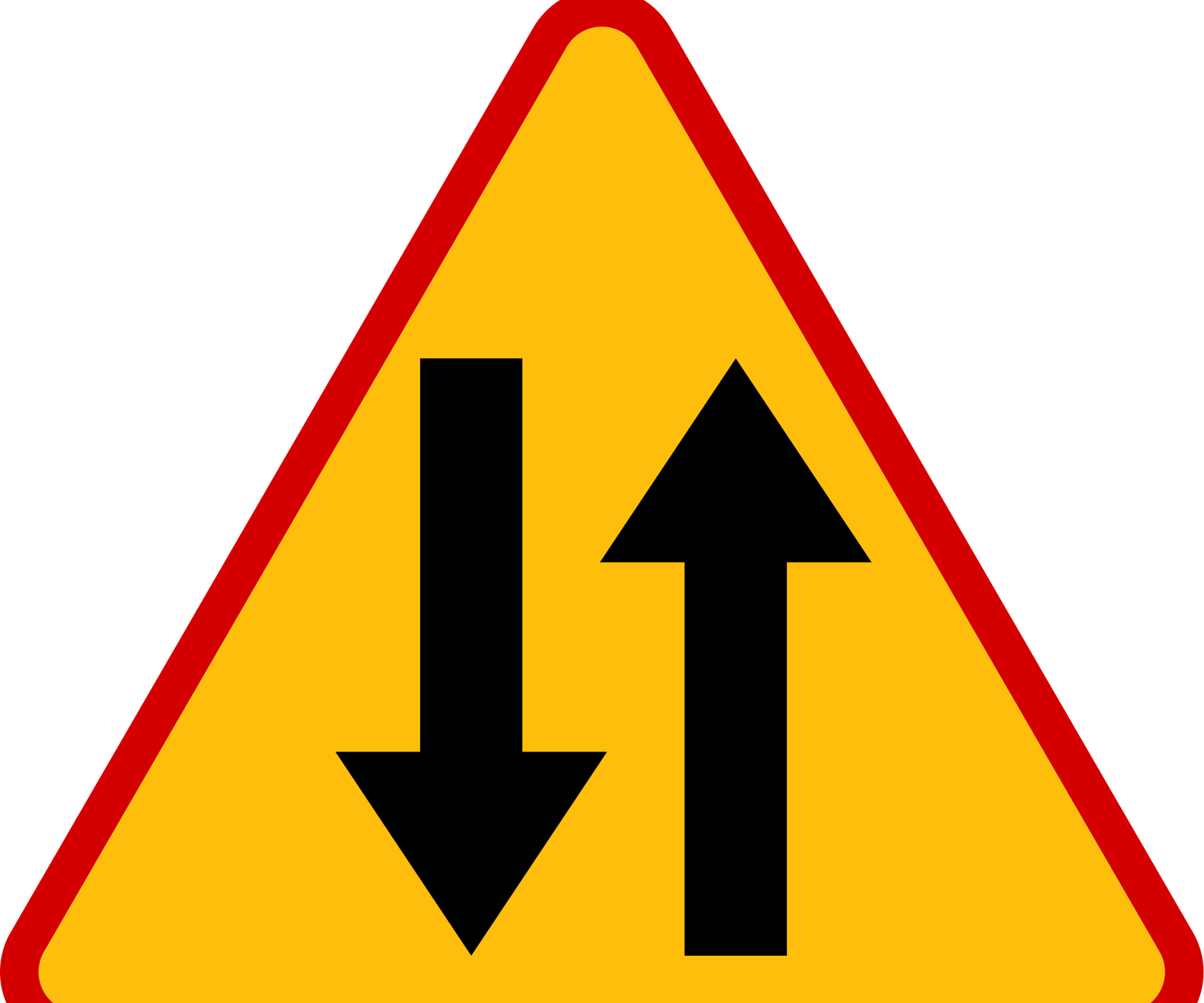Widzisz ten znak. W związku z tym możesz spodziewać się, że kierujący jadący z przeciwnego kierunku widzą następujące oznakowanie: