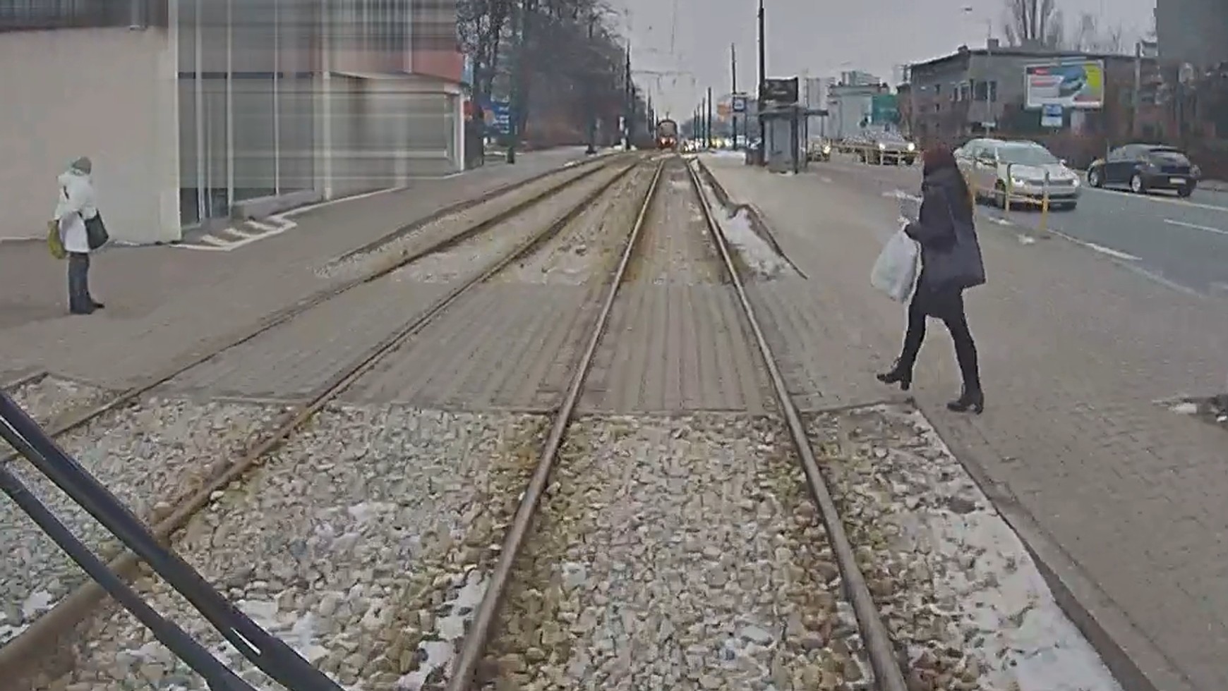 Do niebezpiecznego zdarzenia doszło 10 lutego tuż po godz. 13. Jak widać na nagraniu, kobieta szła wzdłuż torowiska, nagle skręciła w lewo i weszła bezpośrednio pod nadjeżdżający tramwaj.