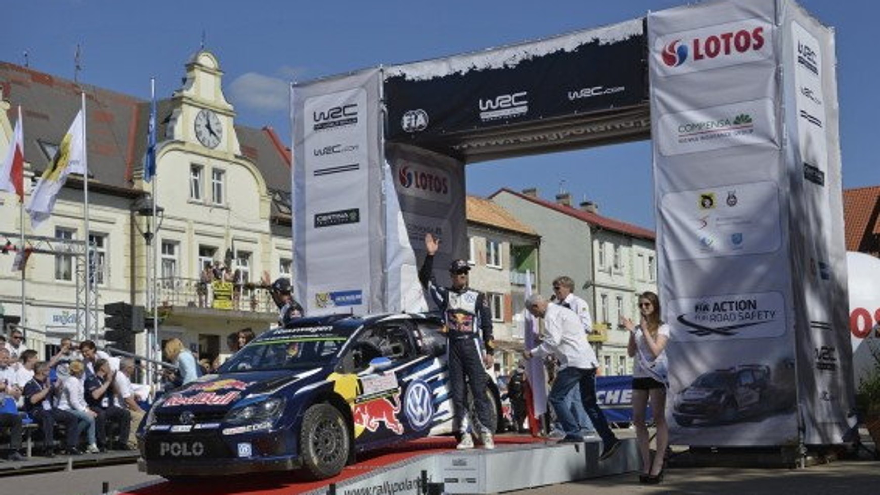 Rywalizacja na trasie LOTOS 72. Rajdu Polski rozpoczęła się od przejazdu widowiskowego superoesu „Mikołajki”, do którego załogi tradycyjnie startowały w parach. Na tej liczącej 2,50 km próbie najszybszy okazał się urzędujący mistrz świata Sébastien Ogier. Kierowca ekipy Volkswagen Motorsport o pół sekundy wyprzedził niesionego dopingiem lokalnych kibiców Roberta Kubicę (Ford Fiesta RS WRC). Trzecia lokata przed jutrzejszymi oesami należy do Andreasa Mikkelsena, który na kilka dni przed LOTOS 72. Rajdem Polski przedłużył swój kontrakt z fabrycznym zespołem Volkswagena. „Bardzo lubię ten rajd i mam nadzieję na odniesienie kolejnego zwycięstwa” – powiedział po ukończeniu pierwszej próby Sébastien Ogier. „Nie nastawiam się na zajęcie konkretnego miejsca. Moim celem jest dobra jazda, później zobaczymy na co nas stać. Wiem, że polscy kibice oczekują ode mnie dobrego występu, ale musimy być realistami. Ze względu na ograniczenia budżetowe, mamy niewielkie szanse w starciu z fabrycznymi ekipami” – dodał Robert Kubica.