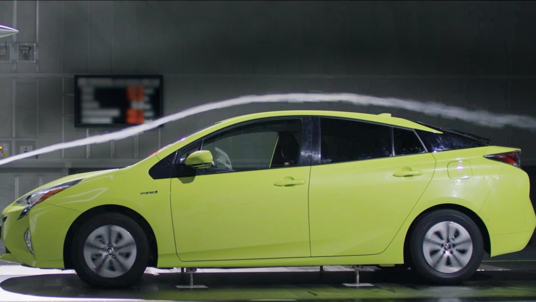 Projektując najnowszą, czwartą generacją Toyoty Prius, wprowadzono cały szereg ulepszeń zmniejszających opory powietrza. Bryła samochodu została obniżona, najwyższy punkt dachu przesunięto w przód o 170 mm, tylny spoiler obniżono o 55 mm. Płaskie przednie słupki zaopatrzono w specjalnie ukształtowane nakładki, poprawiające przepływ powietrza. Boczne krawędzie przedniego zderzaka ukształtowano w sposób optymalizujący opływ powietrza wokół przednich opon. Tylnemu zderzakowi nadano kształt minimalizujący zawirowania za samochodem. Wiele uwagi poświęcono spodniej powierzchni nadwozia – oprócz gładkich osłon zaopatrzono ją w starannie dobrane płetewki stabilizujące przepływ powietrza. Zastosowane rozwiązania dokładnie przebadano w tunelu aerodynamicznym, umożliwiającym badanie oporów powietrza w warunkach odpowiadających jeździe z prędkościami do 250 km/h przy obracających się kołach. Wyniki wielu takich prób pozwoliły dokonać optymalizacji aerodynamiki samochodu i doprowadzić współczynnik oporu Cx do rekordowo niskiej wartości 0,24.