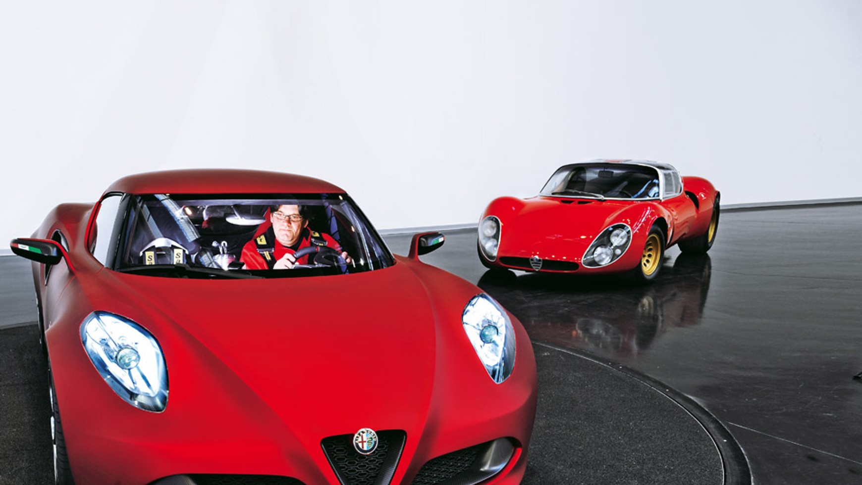 Patrząc w studiu fotograficznym na obydwa auta, nie sposób pozbyć się wrażenia, że twórcy 4C zapatrzyli się na dzieło Franca Scaglionego (spod ręki którego wyszło piękne Tipo 33). Jednak styliści z Centro Stile Alfy odrzucają teorię, jakoby mieli stworzyć kolejną interpretację retrodesignu. Nowa Alfa to auto, w którym odnajdziemy pewne „cytaty” z poprzedniczki, ale nic poza tym.