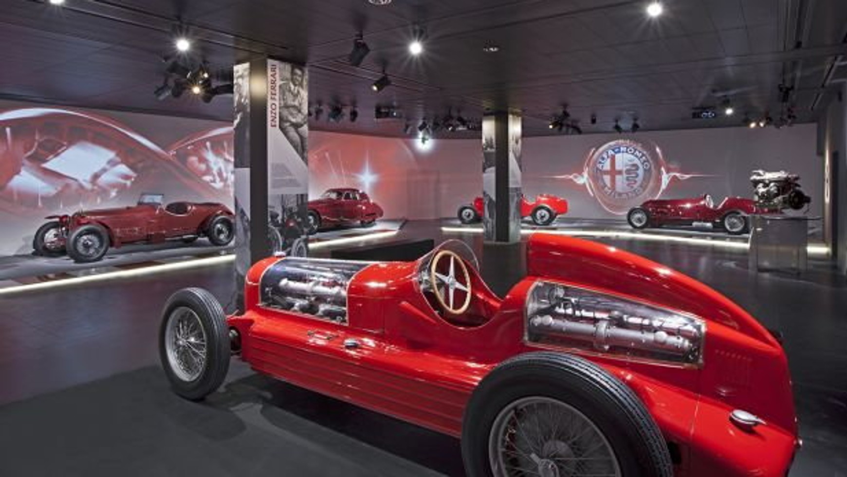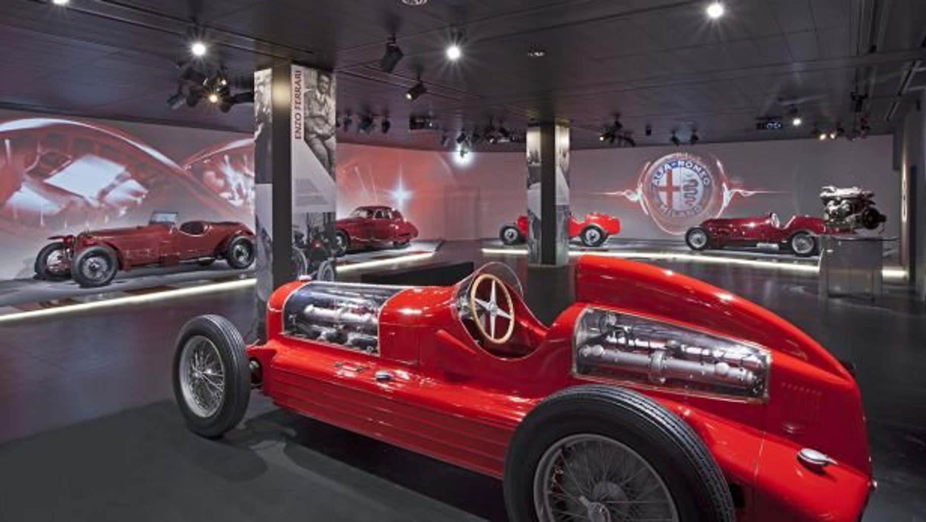 Wzdłuż trasy zwiedzania można podziwiać 69 modeli marki, które miały największy wpływ nie tylko na rozwój marki, ale również na historię motoryzacji. Począwszy od pierwszego modelu A.L.F.A., 24 HP, po legendarnych zwycięzców rajdu Mille Miglia, takich jak model 6C 1750 Gran Sport prowadzony przez Tazio Nuvolariego, od 8C z lekkimi nadwoziami Touring po „Alfettę" 159, która wygrała Mistrzostwa Świata Formuły 1 w 1951 roku, prowadzona przez Juana Manuela Fangio; od Giulietty, kultowego samochodu lat 50., po model 33 TT 12.