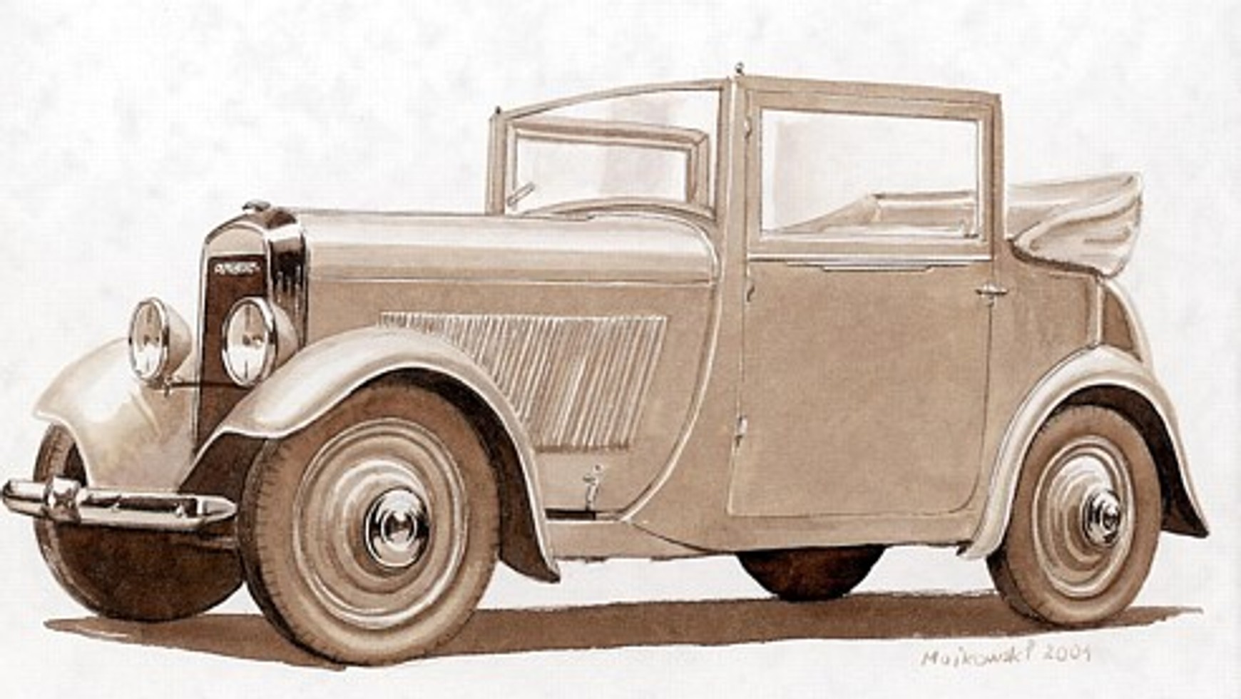 W tej sytuacji trzej panowie Edmond Moyet, Emile Akar i Joseph Lamy założyli nową firmę Amilcar, która miała budować cyclecary. Prototyp nowego auta powstał w 1921 roku. Był to bardzo prosty pojazd z 2-miejscowym nadwoziem, napędzany 4-cylindrowym silnikiem o poj. 903 ccm. Kolejne modele były już bardziej skomplikowane. Najpopularniejsze stały się wersje sportowe oznaczane jako CGS i CGSs z obniżoną karoserią. Dział sportowy zdominował działalność firmy. Powstawały coraz to mocniejsze konstrukcje wyposażone nawet w kompresory Rootesa. Nie gwarantowało to jednak firmie przetrwania i przejęła ją grupa finansowa La Sofia, która w 1937 roku odsprzedała część udziałów Hotchissowi. Firma przetrwała do 1939 roku. Prezentowany model C3 (5CV) z nadwoziem cabriolet Luxe powstał w 1933 roku. 4-cylindrowy, dolnozaworowy silnik o pojemności 877 ccm i mocy 21 KM pozwalał osiągać prędkość 95 km/h.