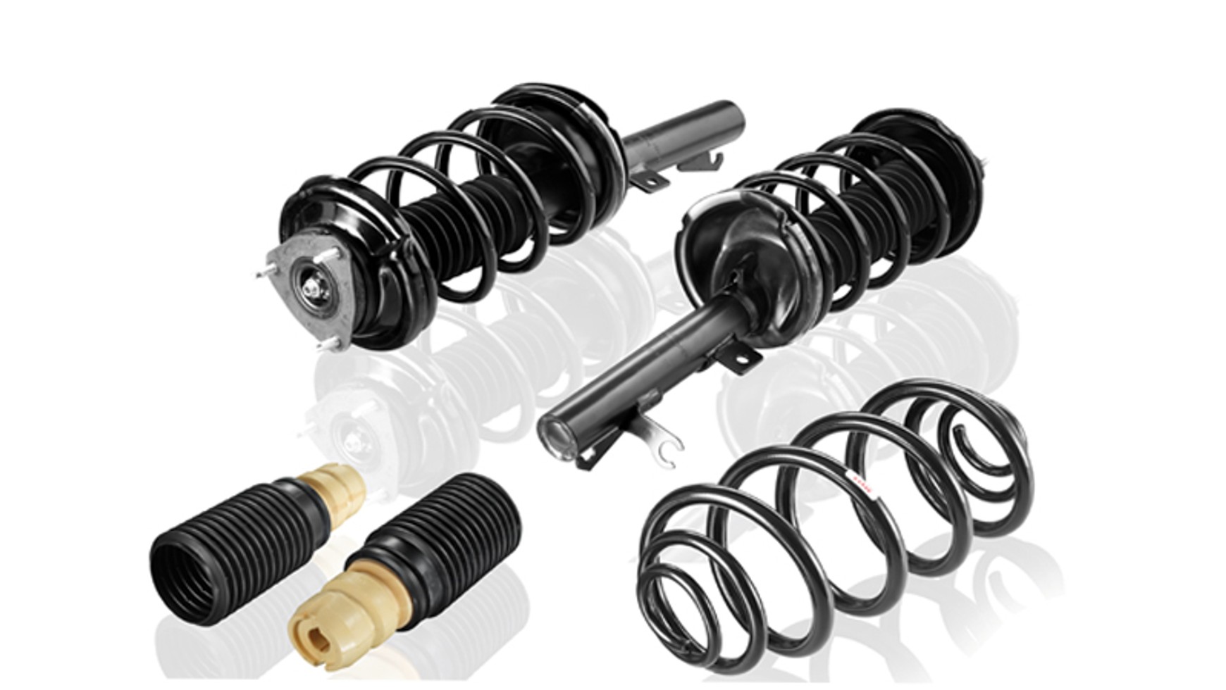 Mówiąc o amortyzatorach nie należy zapominać o elementach ściśle z nimi współpracujących. W szczególności są to łożyska górnego mocowania amortyzatora, zestawy ochronne i sprężyny.