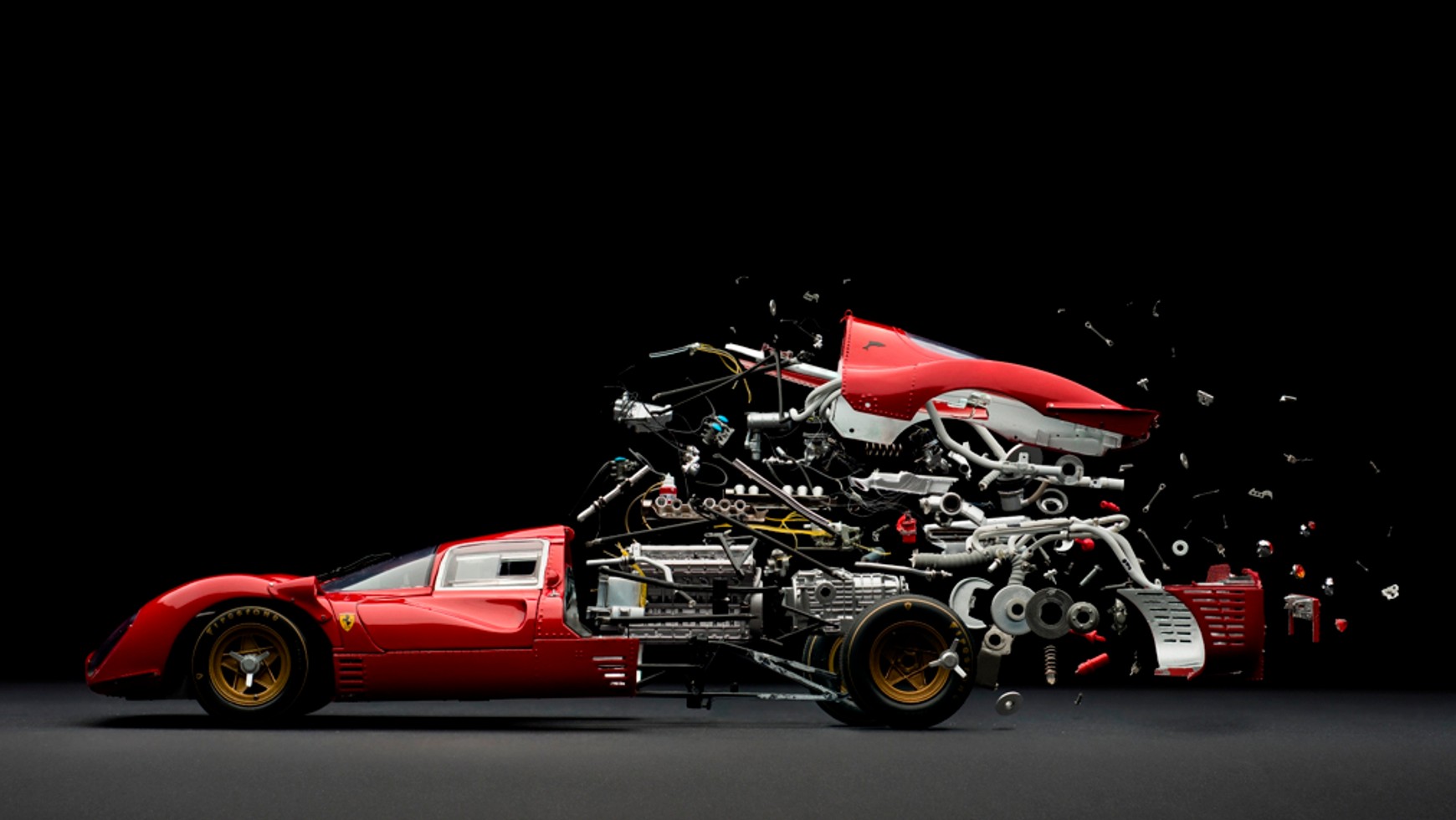 Artysta rozpoczyna proces twórczy od rozłożenia modelu na czynniki pierwsze, następnie szkicuje sposób ułożenia poszczególnych elementów wokół jednego, które ma stanowić „centrum eksplozji”, np. karoseria czy koła. Czasami, jak w przypadku Ferrari 330 P4, niektóre części zostają na swoim miejscu.