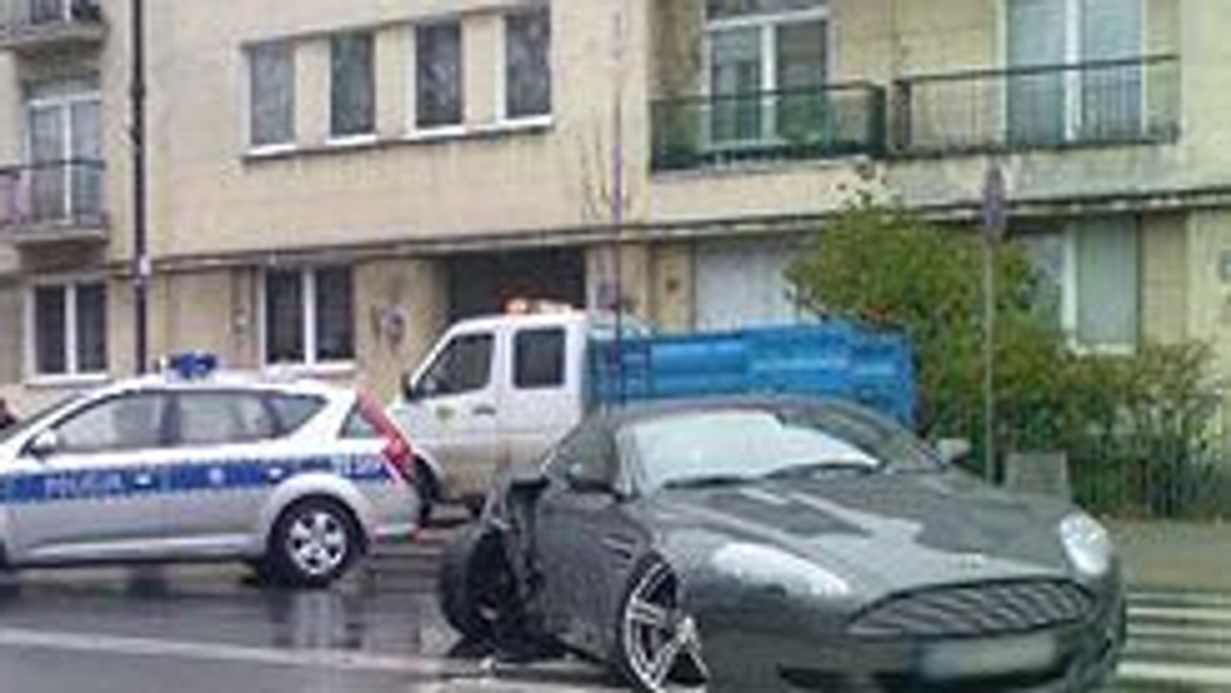 Auto uderzyło w sporej grubości drzewo, które złamało się i przewróciło na jezdnię. Aston Martin DB9 ma urwane tylne koło oraz zmasakrowaną prawą tylną część nadwozia. Kierowca z tego zdarzenia wyszedł bez szwanku, ale naprawa samochodu będzie zapewne drogo kosztowała.