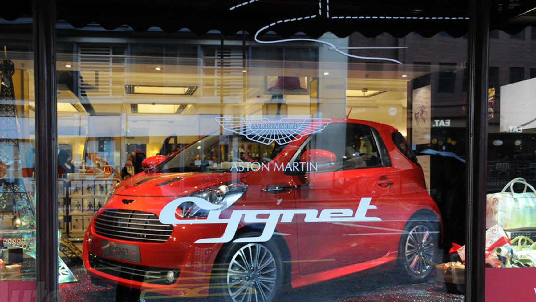 Na sklepową wystawę trafiła produkcyjna wersja nowego miejskiego modelu Astona Martina. Brytyjski producent zmuszony przez sztuczne przepisy "proekologiczne" do ograniczenia emisji CO2 w całej gamie oferowanych przez siebie modeli sięgnął po najprostsze rozwiązanie. W oparciu o Toyotę iQ przygotował Cygneta. Chociaż samochód ma trafić na rynek w 2011 r., już teraz można zobaczyć realny egzemplarz. Trzeba przyznać, że wstawienie Cygneta do Harrodsa to niezwykle oryginalna forma publicznego debiutu modelu. Wszyscy zainteresowani będą mieli okazję zapoznać się ze stojącym w sklepie Cygnetem do 11 grudnia 2010 r.