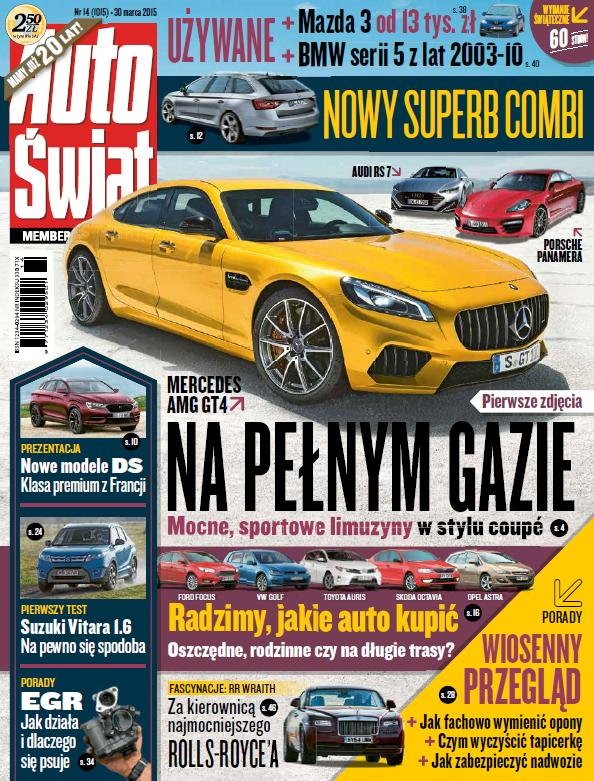 Mamy nadzieję, że lektura „Auto Świata” pozwoli zrealizować Wasze marzenia. Zarówno te, które wymagają większych poświęceń finansowych, jak i te bardziej przyziemne. No czyż, niejeden z nas marzy o którymś ze sportowych aut otwierających dzisiejsze wydanie, czyli o Mercedesie AMG GT4, Audi RS 7 czy Porsche Panamerze.