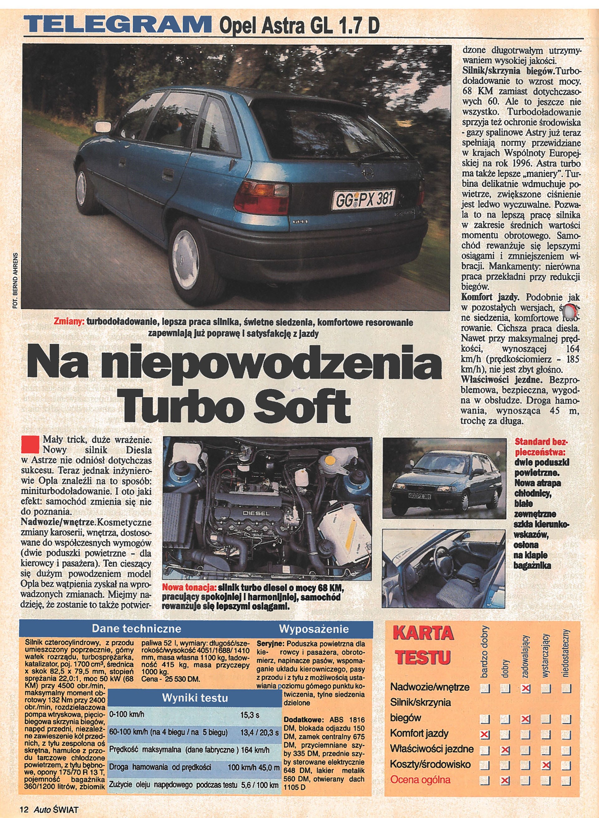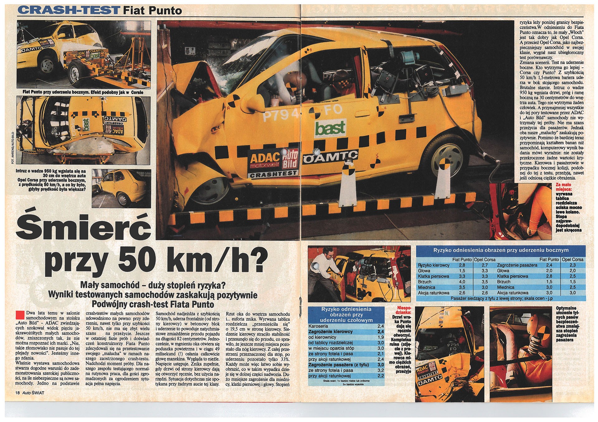 Nowością w prasie motoryzacyjnej był artykuł o crash teście Fiata Punto. Tematem testów zderzeniowych nikt przed nami się nie zajmował. Materiał zdjęciowy oraz wyniki testu otrzymaliśmy z „Auto Bilda”.