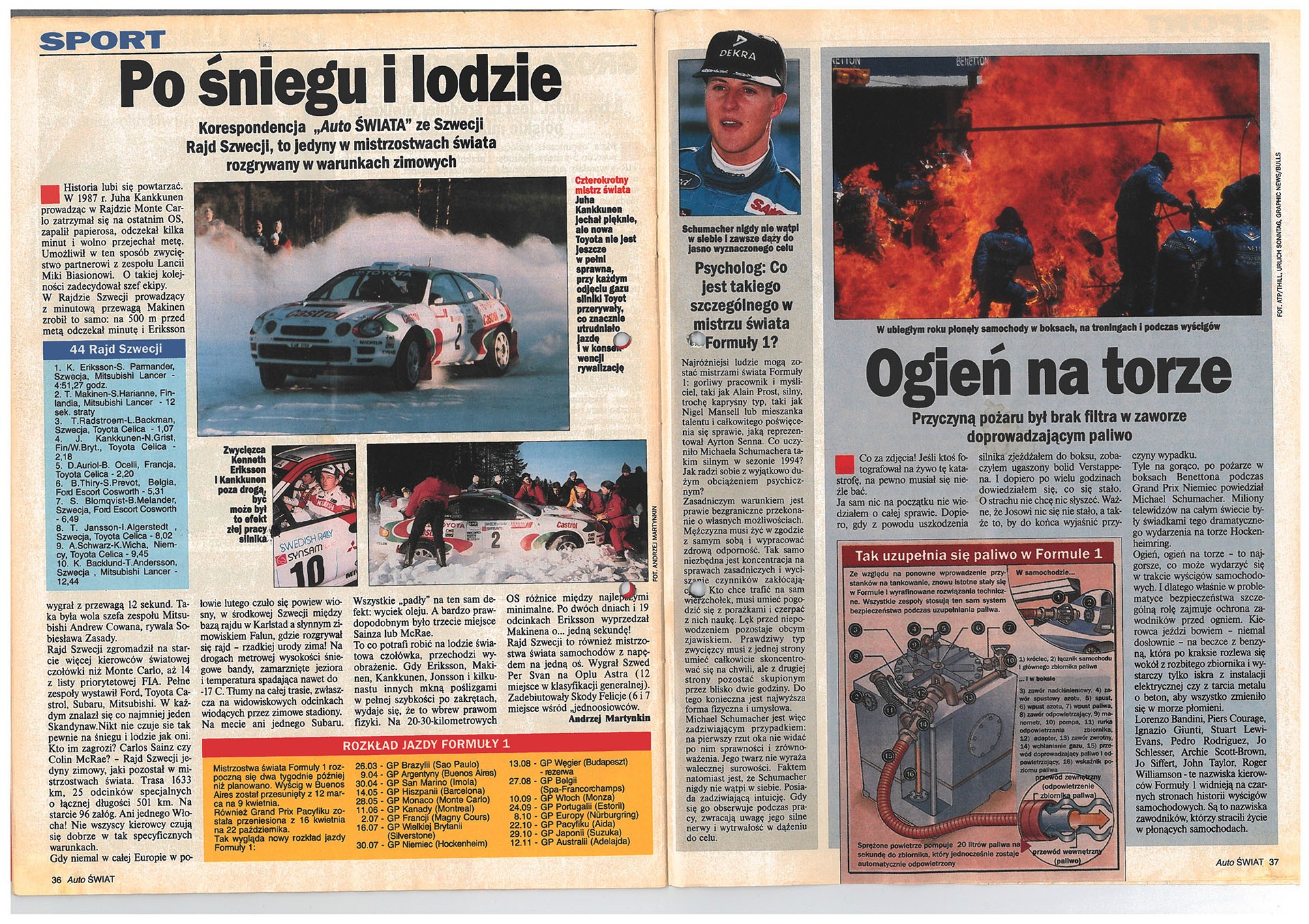 Dużo miejsca poświęcaliśmy też na sporty motorowe – zajmował się tym nasz specjalista Andrzej Jakubaszek. Przybliżał przede wszystkim Formułę 1, rajdy, wyścigi, zawody motocyklowe, przedstawiał sylwetki polskich i zagranicznych zawodników.