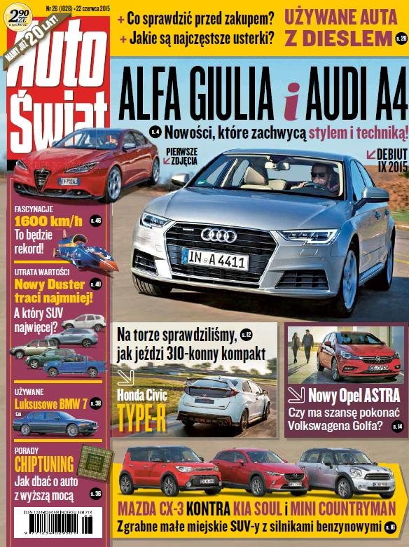 Zajmujemy się w nim wieloma ciekawymi tematami, np. w dziale „Aktualności” zapowiadamy dwie interesujące premiery jesiennego salonu samochodowego we Frankfurcie nad Menem – Audi A4 i Alfę Romeo Giulię. Oba auta mają w Polsce wielu zagorzałych fanów, zdjęcia i informacje o nowych modelach na pewno wywołają gorące reakcje i dyskusje.