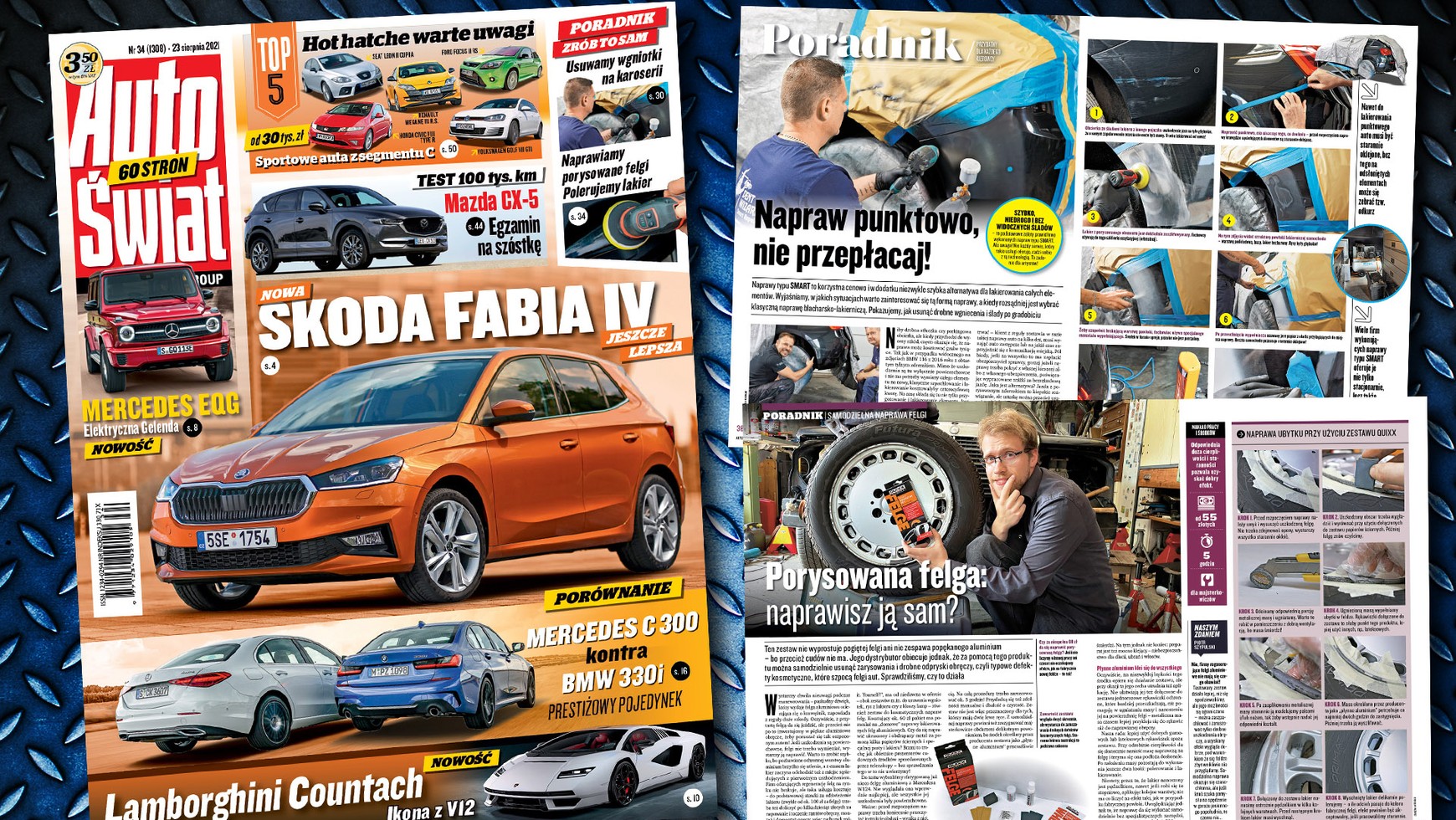 W wydaniu znajdziecie ponadto relację z pierwszych jazd najnowszą generacją jednego z najpopularniejszych modeli na polskim rynku, czyli Skodą Fabią. Ponadto prezentujemy zupełnie nowe wcielenie kultowego Lamborghini Countach i zdradzamy plany Mercedesa na elektryczną klasę G, a w dziale używanych zapraszamy na raport z długodystansowego testu Mazdy CX-5.