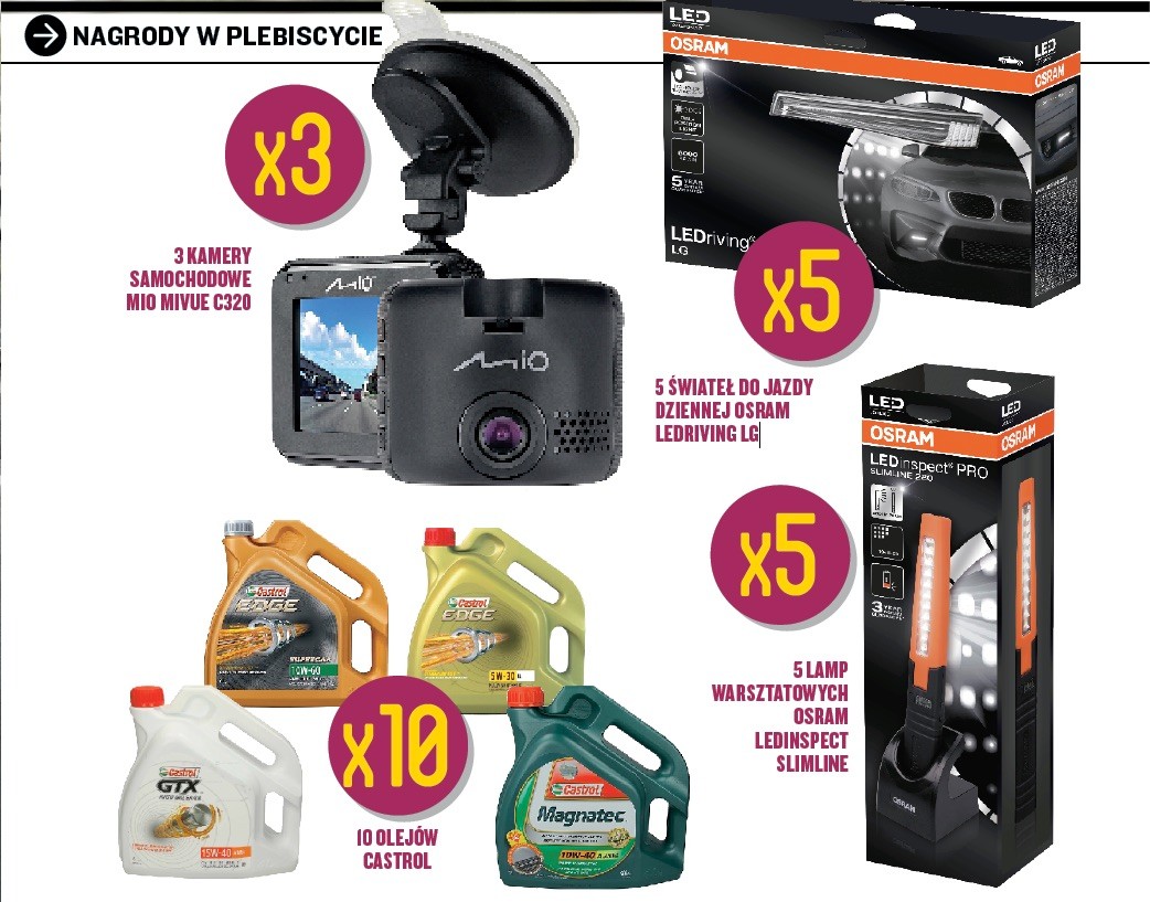 Nagrodą główną w plebiscycie jest Subaru Forester 2.0 CVT w wersji Exclusive. Poza tym do wygrania są kamery samochodowe Mio, upominki od firm Osram i Castrol.