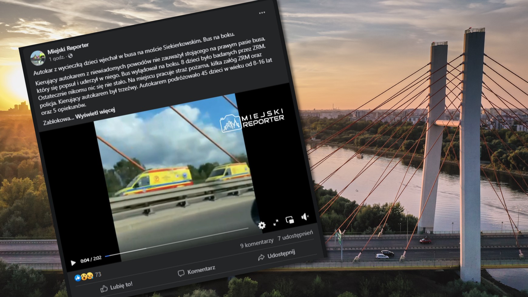Wypadek na Moście Siekierkowskim - autobus wiozący dzieci uderzył w dostawczaka