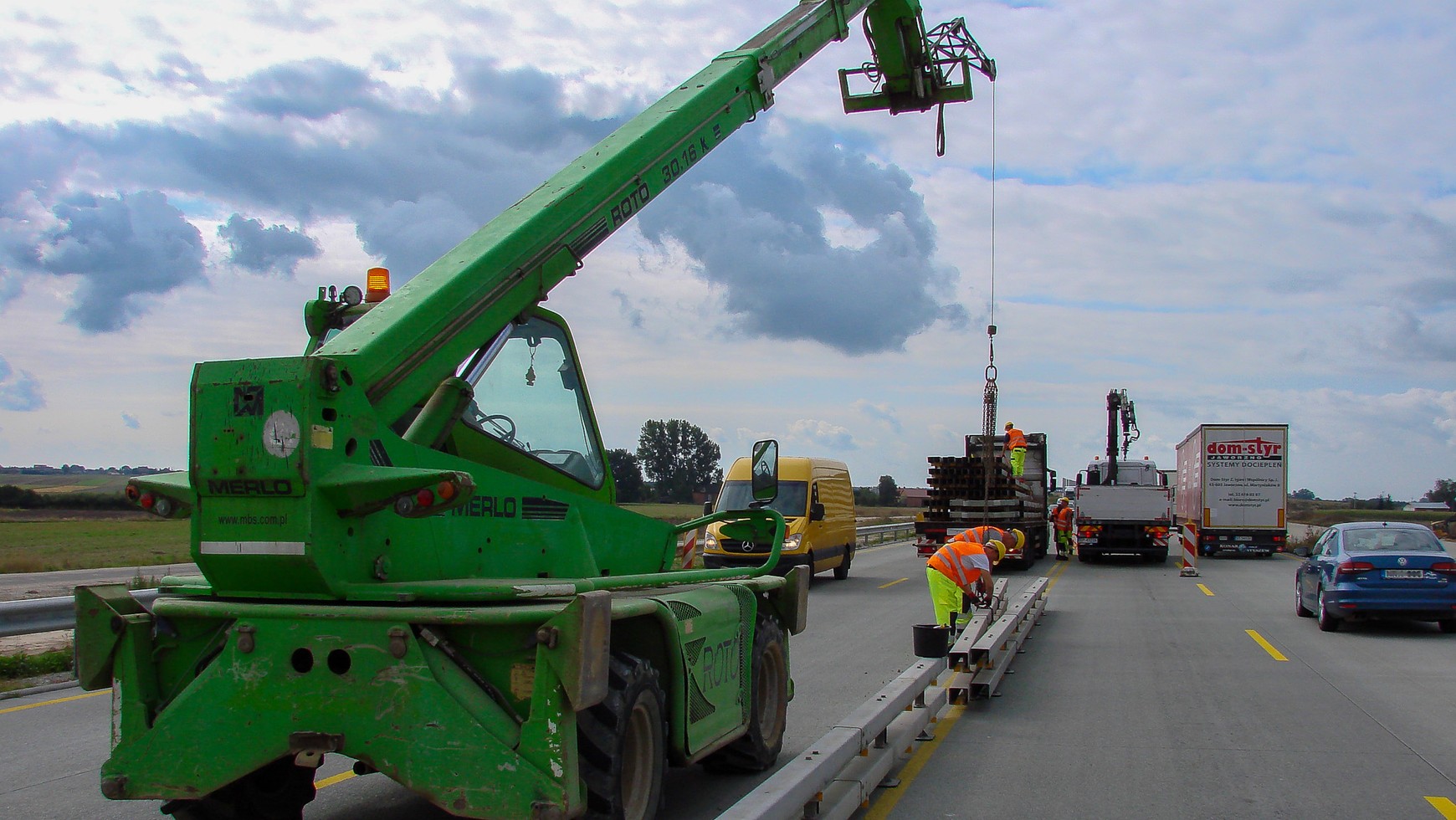 Autostrada A1 - montaż barier separacyjnychGDDKiA