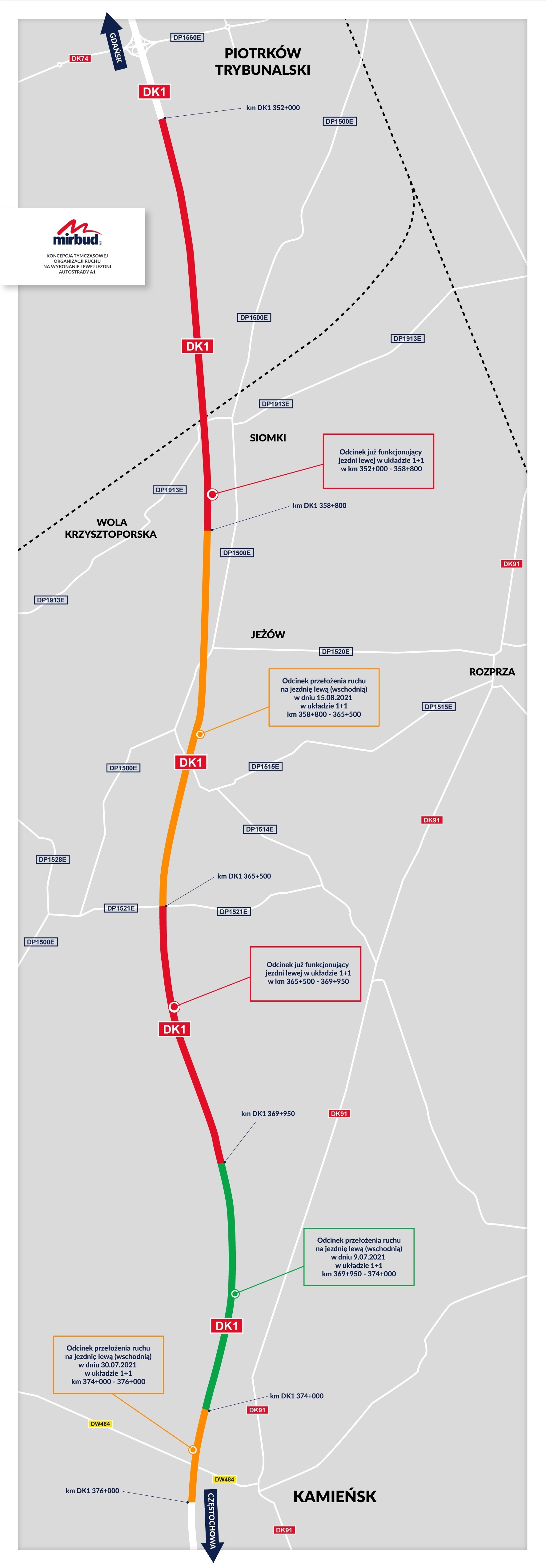 Wykonawca deklaruje, że cała wschodnia jezdnia ma powstać do końca wakacji. Długość całego odcinka liczyć będzie łącznie 25 km, a do oddania pozostało 7 km drogi między Wolą Krzysztoporską i Parzniewicami. Tym samym do końca wakacji cała stara jezdnia tzw. "gierkówki" przejdzie do historii, a po 81-kilometrowym odcinku autostrady A1 kierowcy będą mogli się poruszać po nowej betonowej nawierzchni.